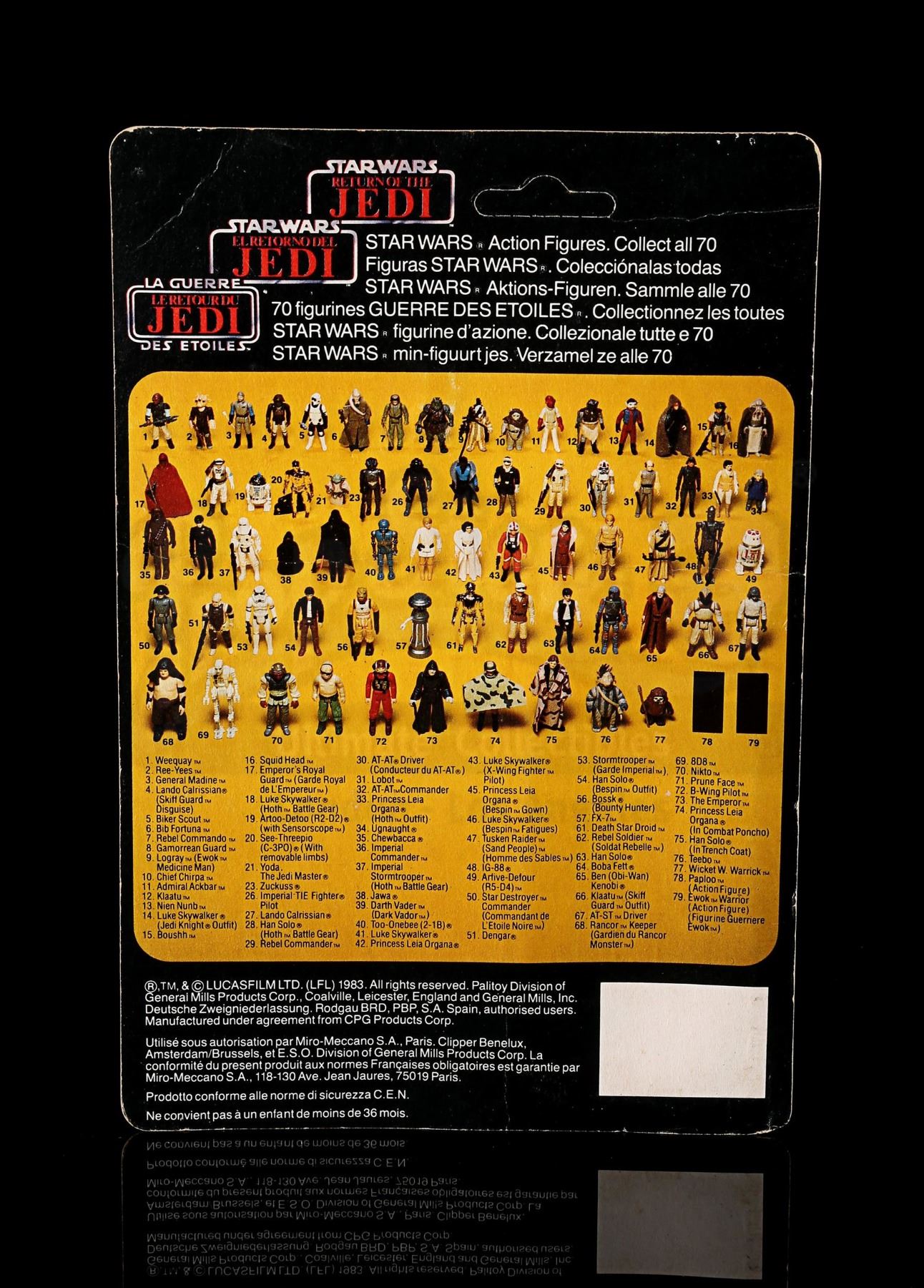 Condition: Good - Unpunched, bubble has some dents and there are indentations to the card back in the ROTJ logo area