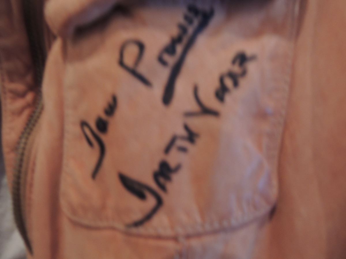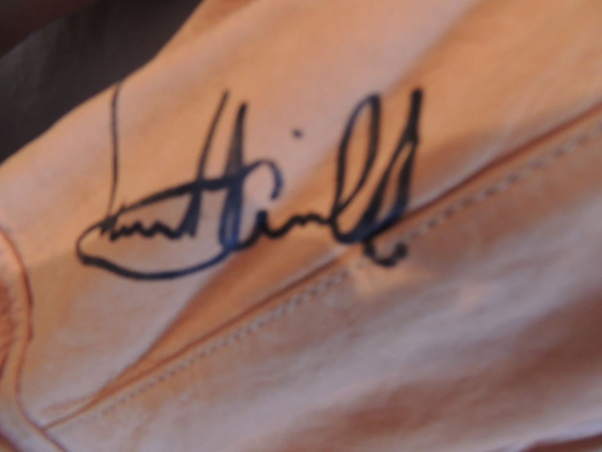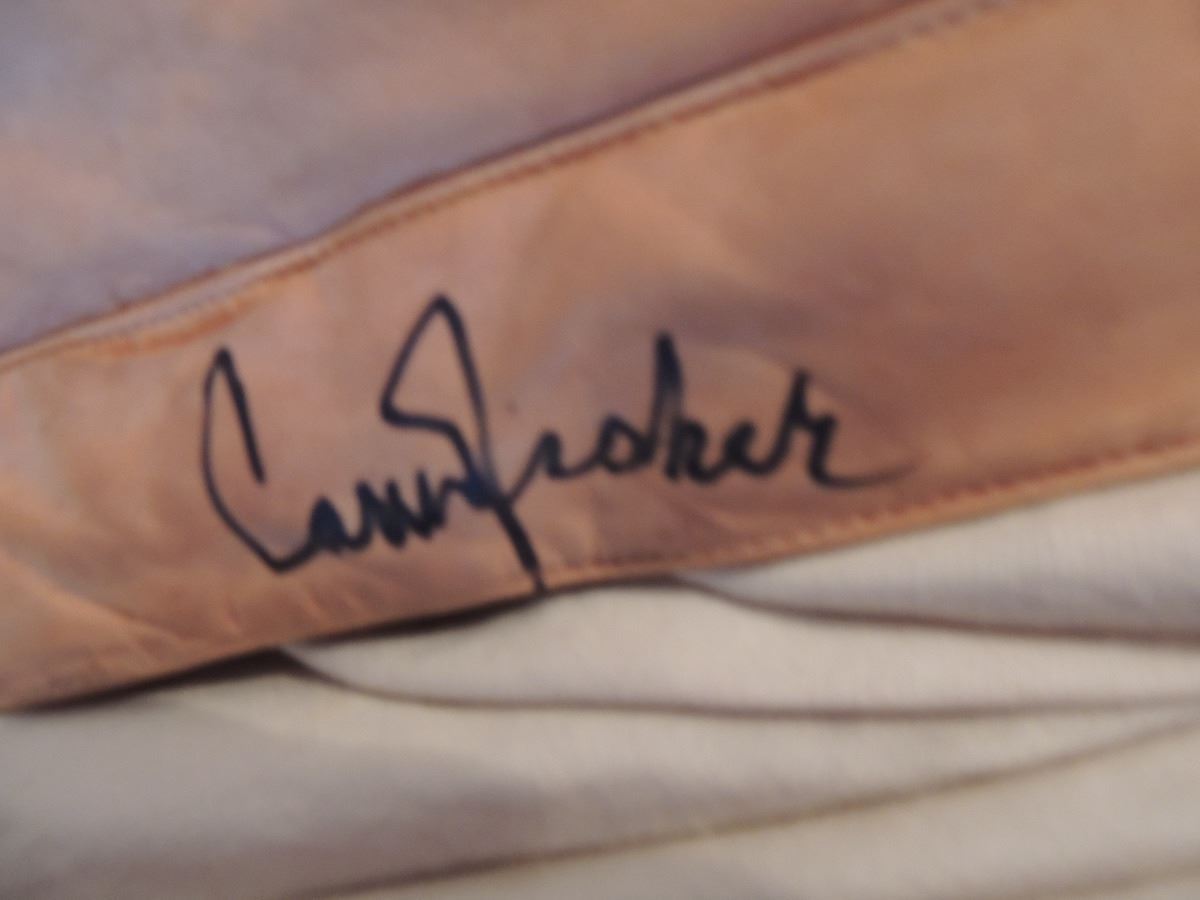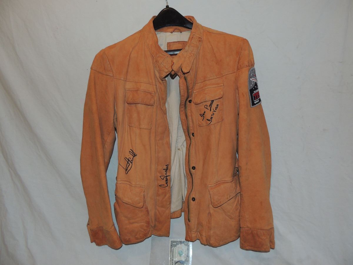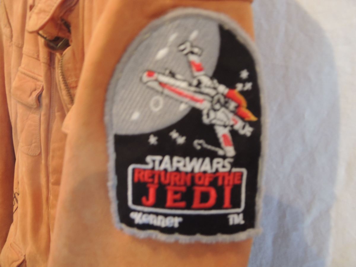 Incredibly scarce STAR WARS RETURN OF THE JEDI KENNER promo Leather jacket signed by MARK HAMILL [LUKE SKYWALKER], CARRIE FISHER [PRINCESS LEIA], and DAVID PROWSE [DARTH VADER]!