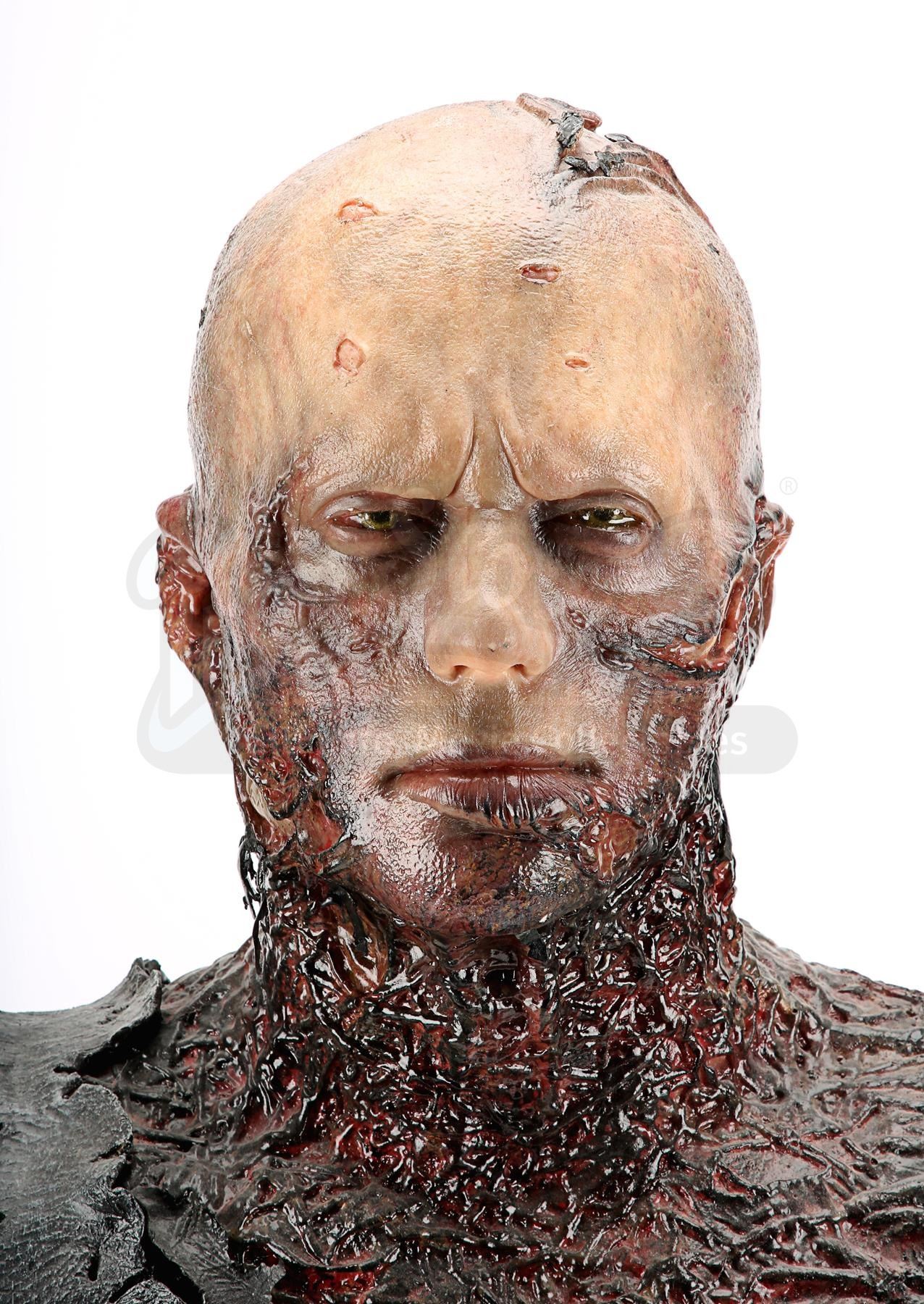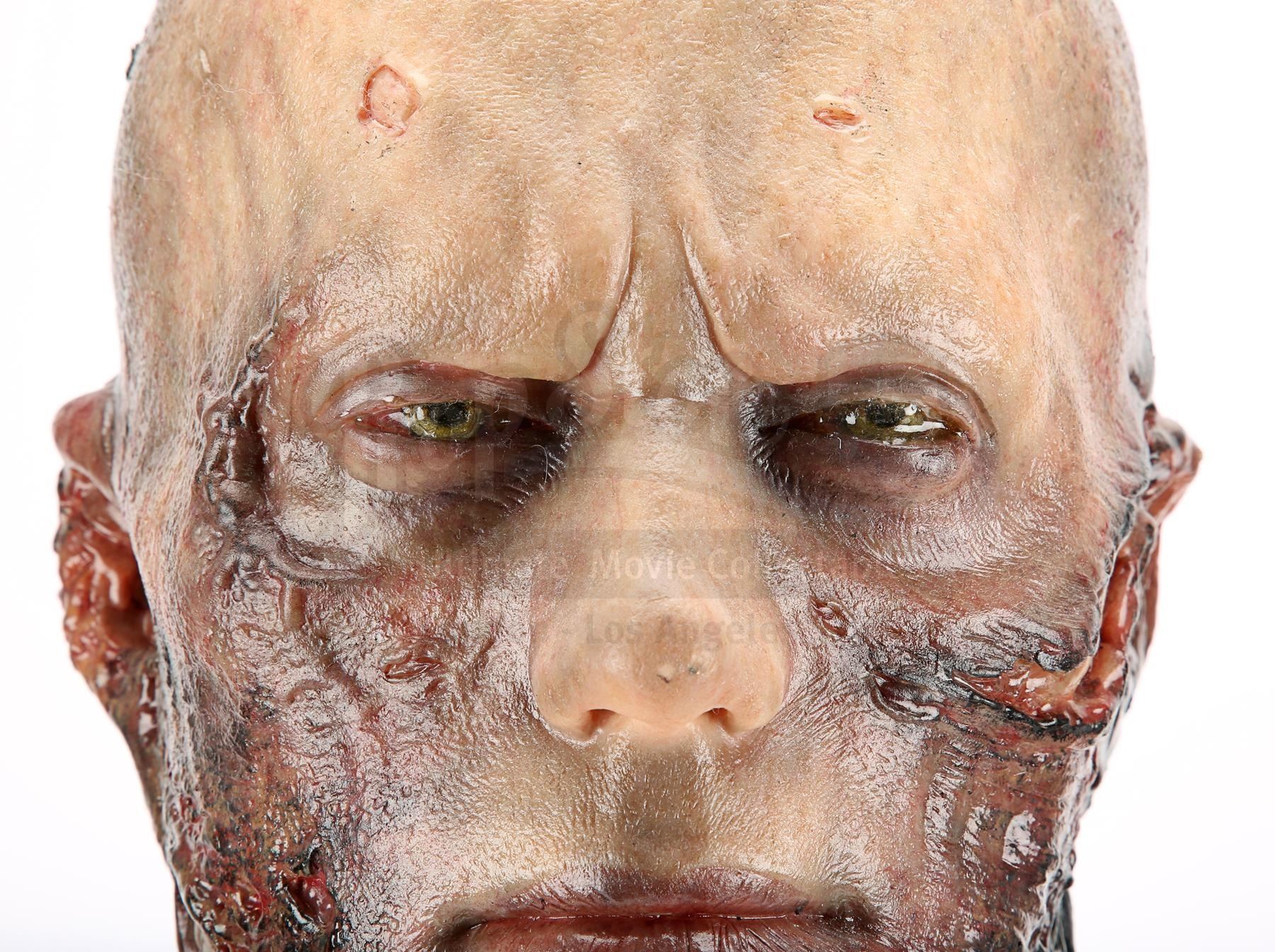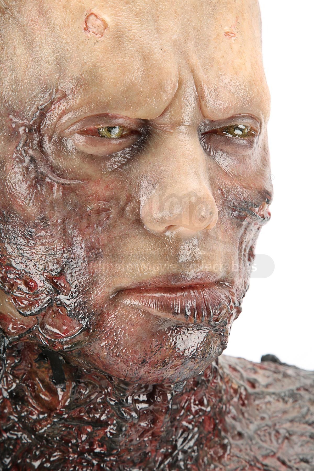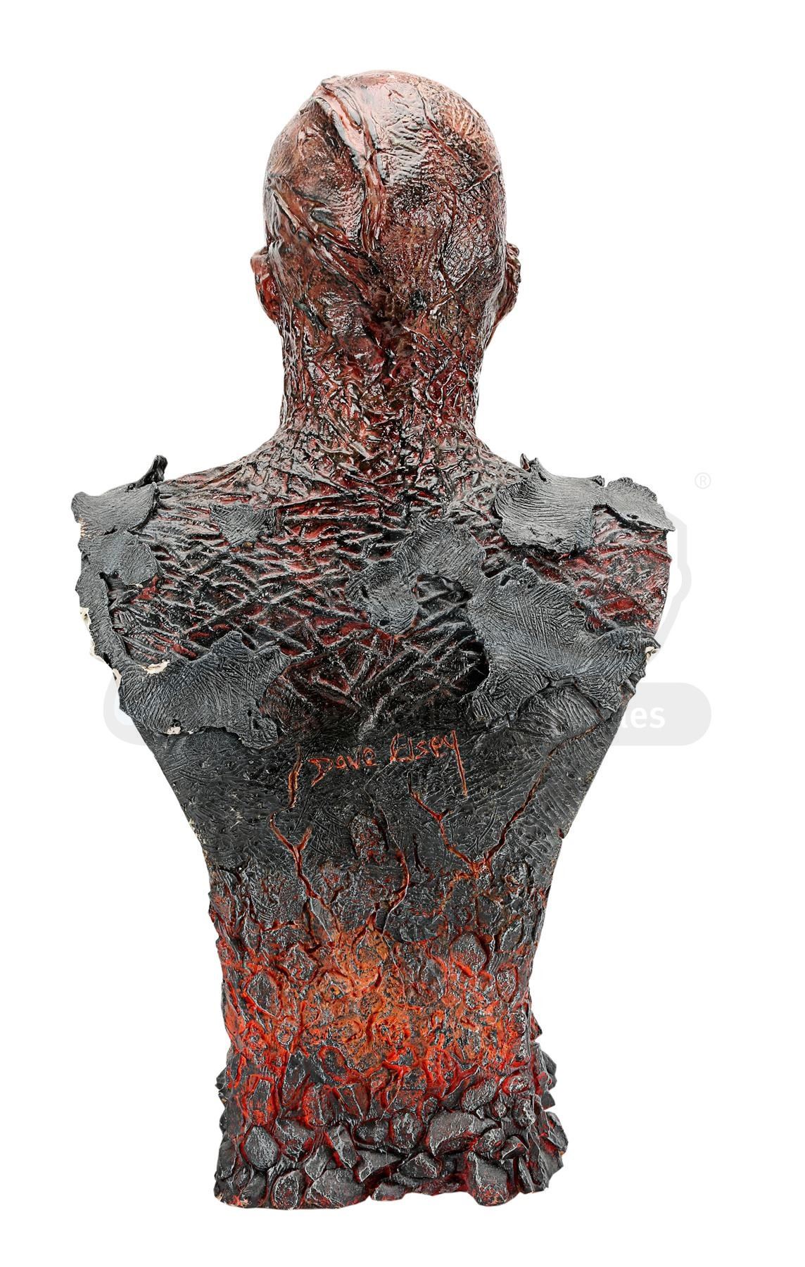 The bust was created after the production by Academy Award-winning make-up effects supervisor Dave Elsey, whose name is carved into the back. Made of fibreglass with a layer of resin, the bust was derived from a casting of Christensen's head with make-up appliances from the original production moulds applied. It has been expertly and precisely hand-painted to look as gruesome and realistic as possible, with burned clothing and grotesque flaps of skin to add to the effect of the piece. The bust has some wear from storage, including some areas where the resin has chipped away, most notably at the base and on the shoulders. Dimensions: 40.5 cm x 23 cm x 73.5 cm (16" x 9" x 29")