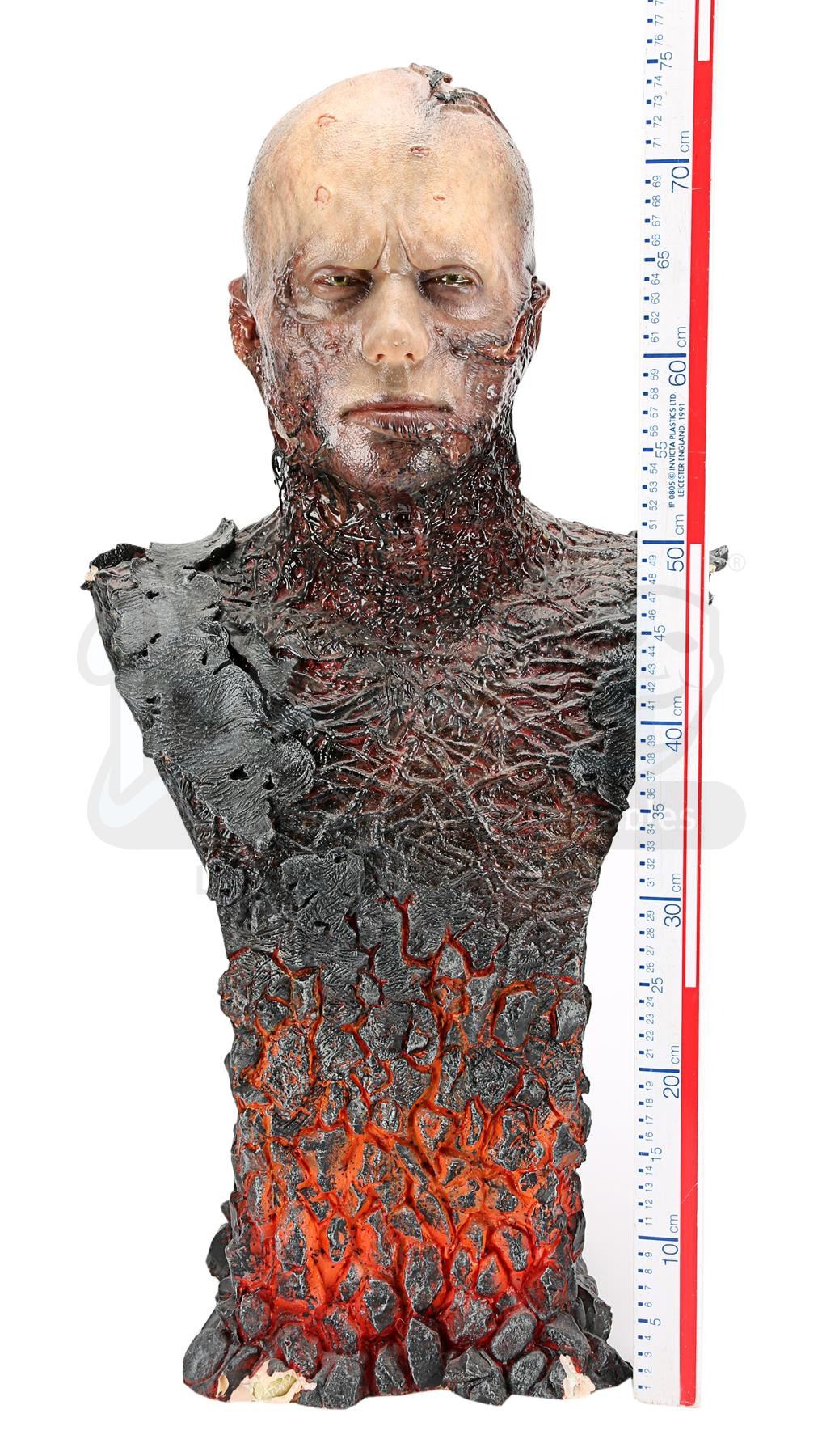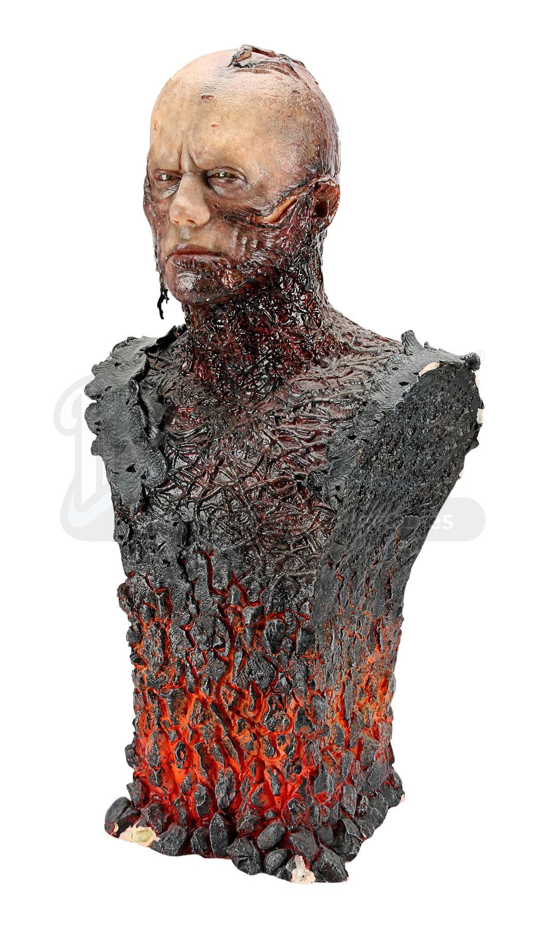A custom-made replica Anakin Skywalker (Hayden Christensen) make-up bust from George Lucas' Star Wars: Revenge of the Sith. The bust depicts Anakin after his fight with Obi-Wan (Ewan McGregor) on Mustafar, in which he was defeated and left heavily burned by the planet's flowing rivers of lava.