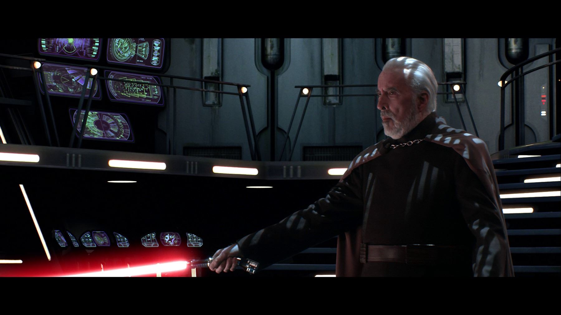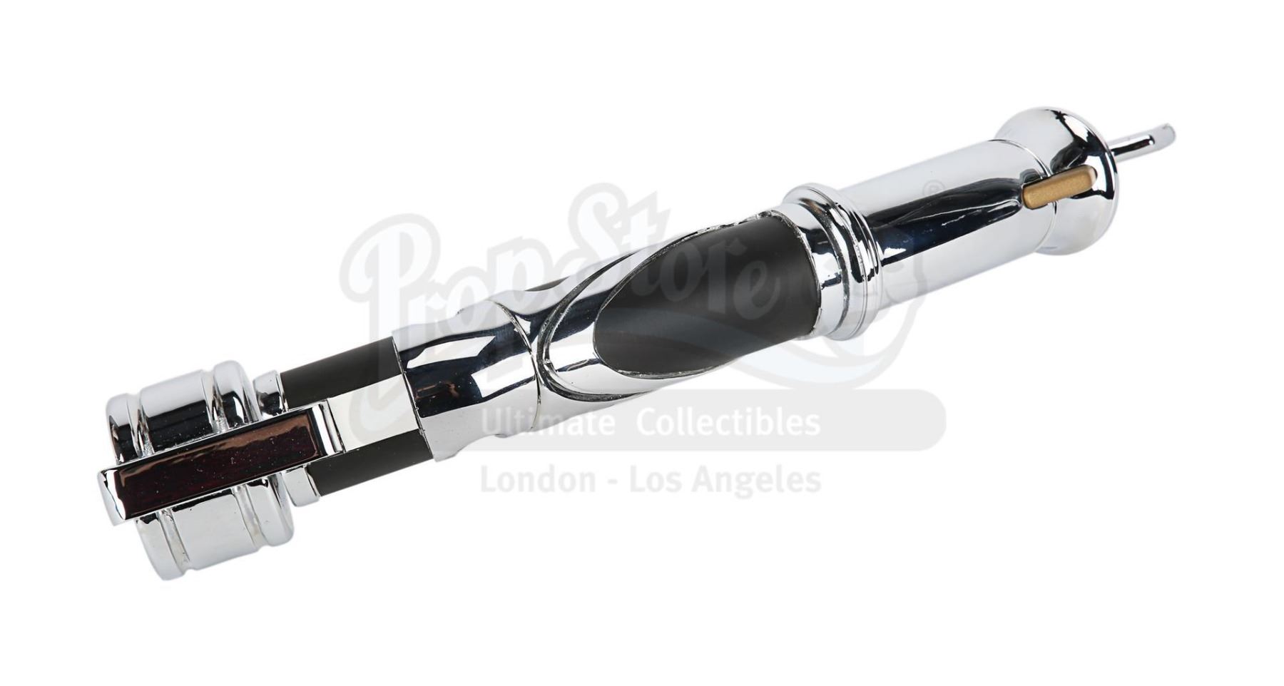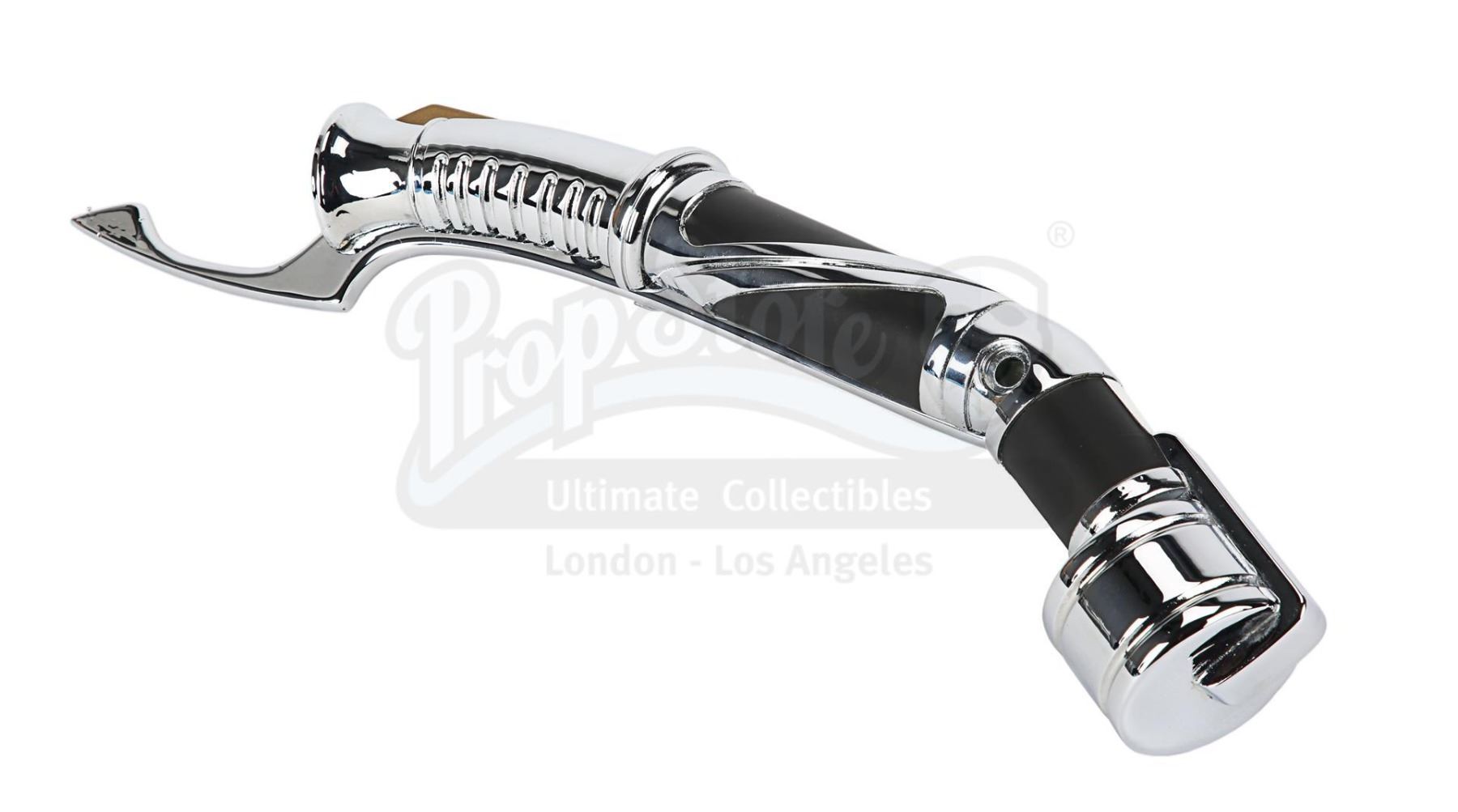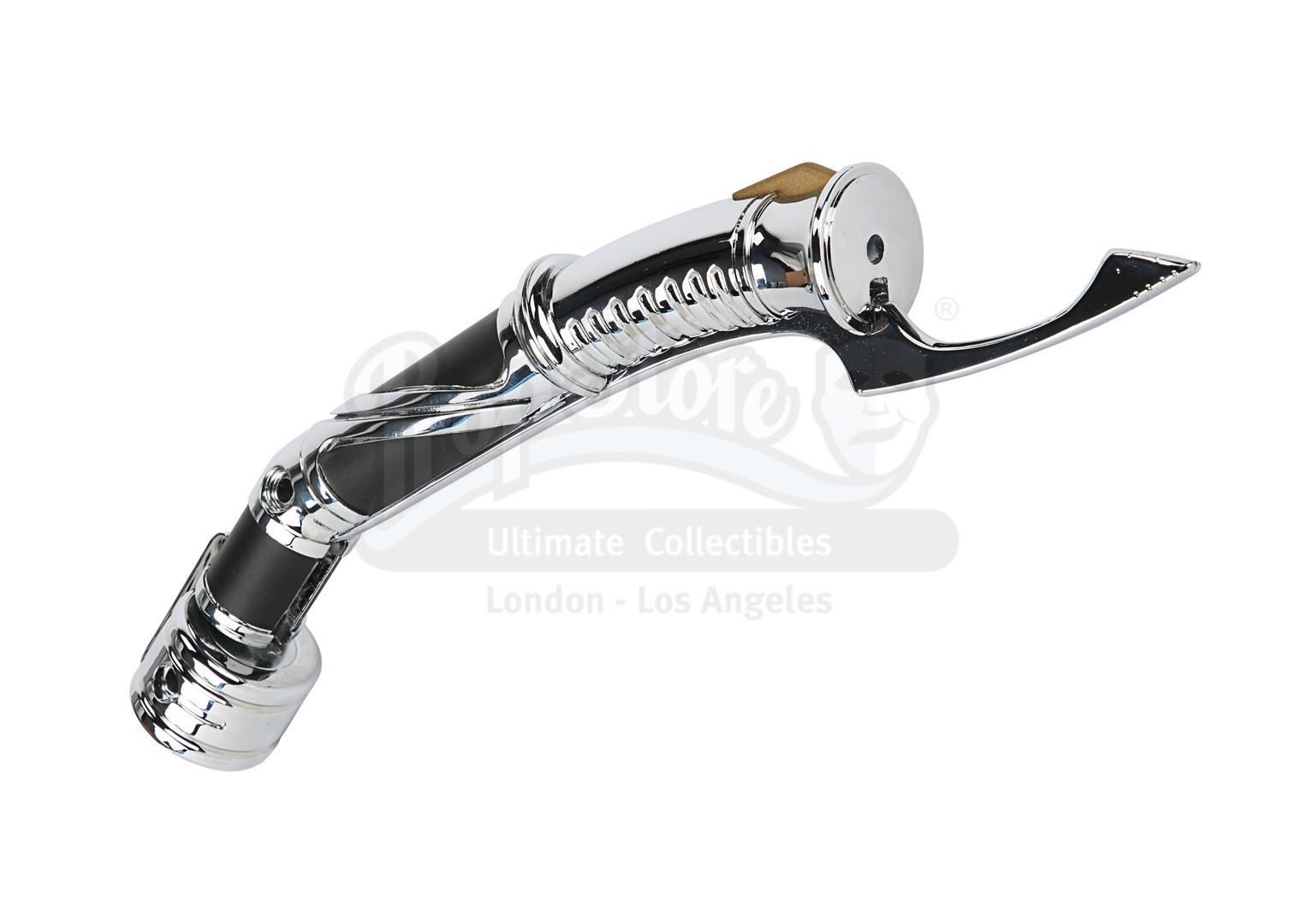 An unfinished version of Count Dooku's (Christopher Lee) lightsaber from George Lucas' Star Wars: Revenge of the Sith. In the Star Wars canon, Dooku studied the Jedi archives, creating his personalised curved lightsaber hilt to best fit his uniquely precise and controlled combat style.