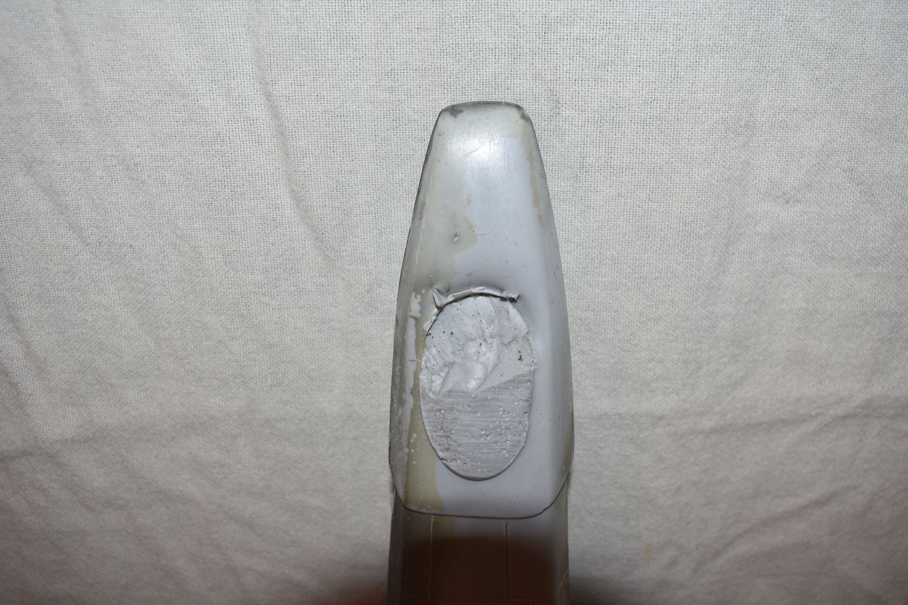 2] I use the Original Paint. repair along the seam area, and the painted area seen in the front landing gear area [Original pouring hole] as proof it is not some production extra, and that it was in fact damaged during filming.