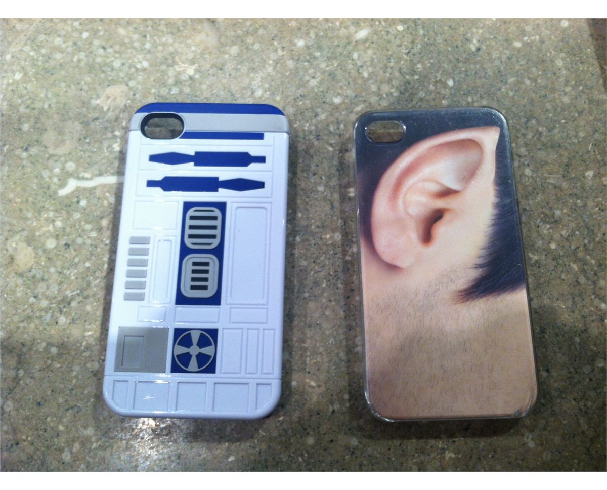 Offered here are 2 IPHONE cases. One is R2D2. The other is a Vulcan ear. These work on IPHONE 4 for sure. Unsure of others.