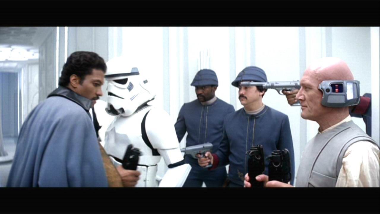 A Bespin Guard uniform from Irvin Kershner’s Star Wars: The Empire Strikes Back. The Bespin guards appeared on Cloud City and were administered by Lando Calrissian (Billy Dee Williams), under the control of his cyborg aide Lobot (John Hollis).