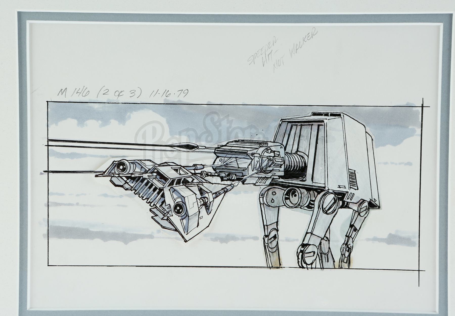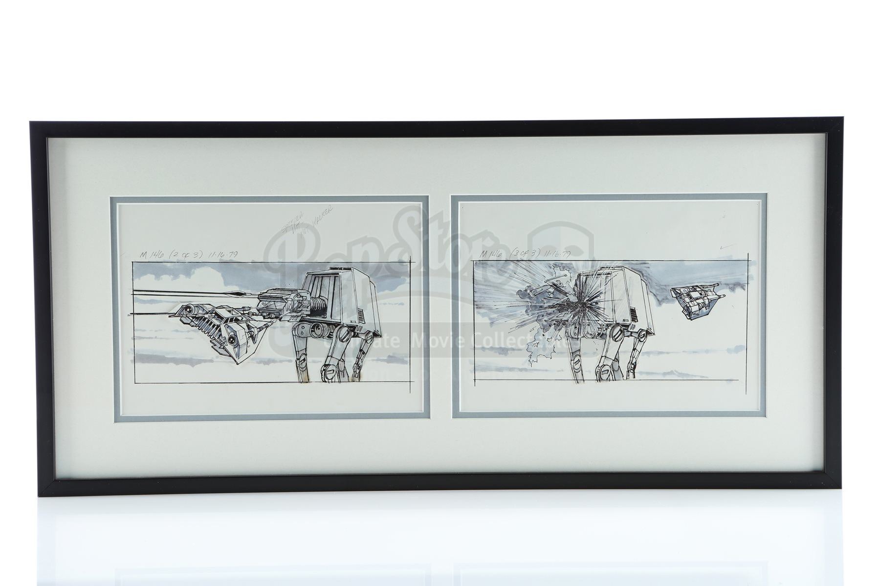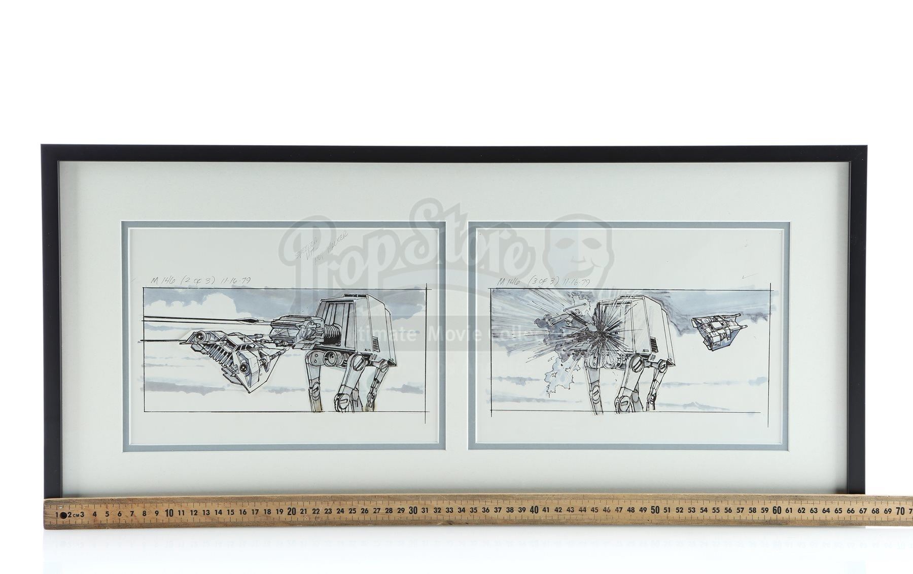 A pair of hand-drawn Imperial walker (AT-AT) storyboards from Irvin Kershner’s Star Wars: The Empire Strikes Back.
