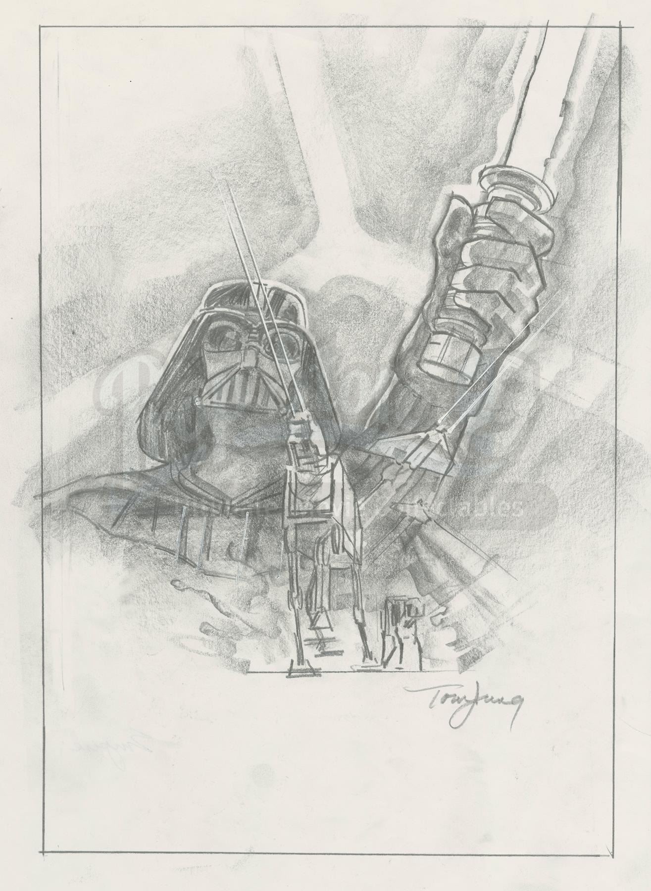 A hand-drawn Tom Jung poster concept sketch from Irvin Kershner's Star Wars: The Empire Strikes Back.