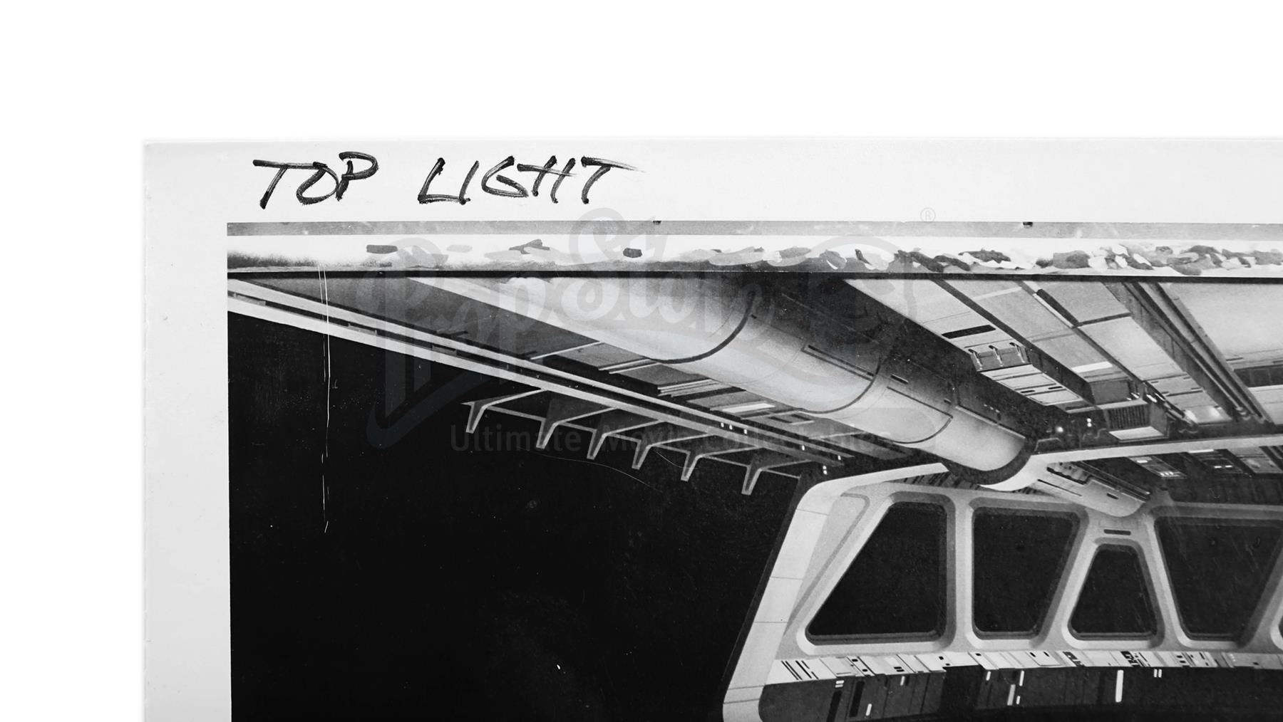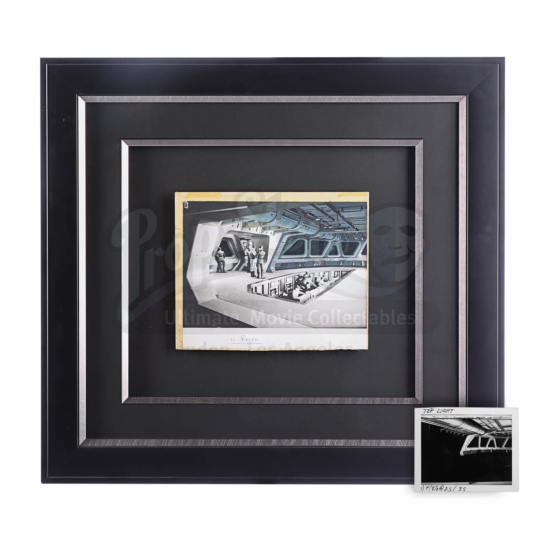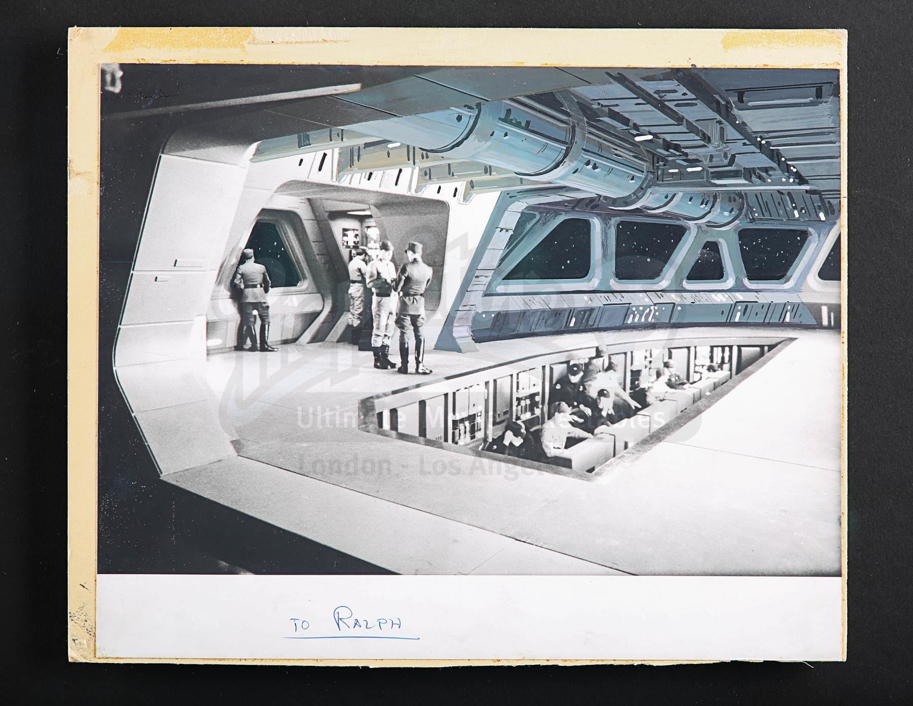 At the bottom of the photograph is a handwritten note reading "To Ralph", and on the back is a smaller photograph of the same shot, but with everything blacked out except the areas over which McQuarrie was to paint his design.
