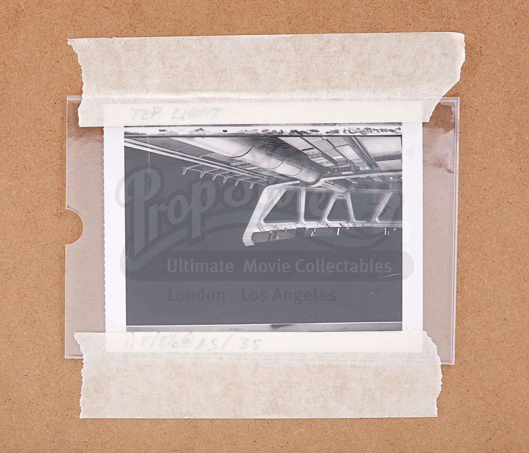 A hand-painted Ralph McQuarrie matte concept of a Star Destroyer from Irvin Kershner's Star Wars: The Empire Strikes Back. This is a production photograph, with a hand-painted concept by McQuarrie of his ideas for the interior of an Imperial Star Destroyer.