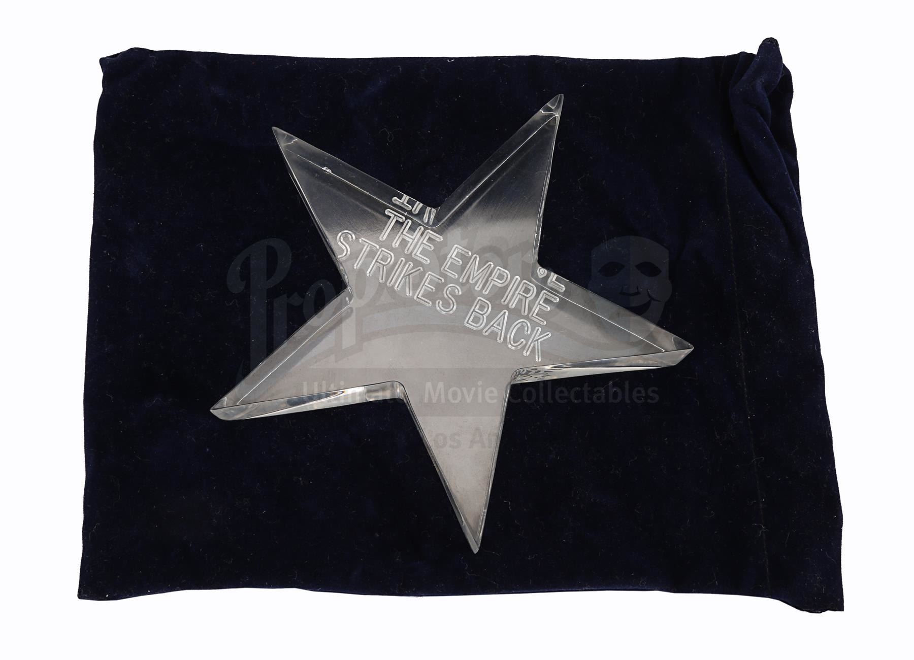 A set of two star-shaped paperweight crew gifts from Irvin Kershner's Star Wars: The Empire Strikes Back. Stars were gifted to cast and crew members upon completion of filming and were also handed out at exclusive screenings.
