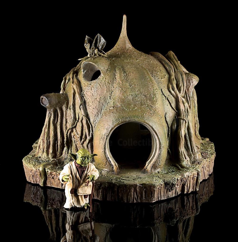 Hand-painted 1:6 scale of Yoda's simple Dagobah home. Complete with a variety of accessories for the interior of the house including tables, plates of foods, snakes and more. Features working light-up fittings within hut.