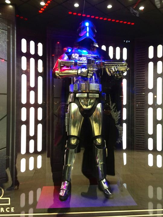 A life-size Captain Phasma figure display from the promotion of J.J. Abrams' Star Wars: The Force Awakens. Originally obtained from Disney, this statue was first displayed in the Galeries Lafayette in Paris during the festive period of 2015, and was then the main prize in a Star Wars competition run by German newspaper Bild.