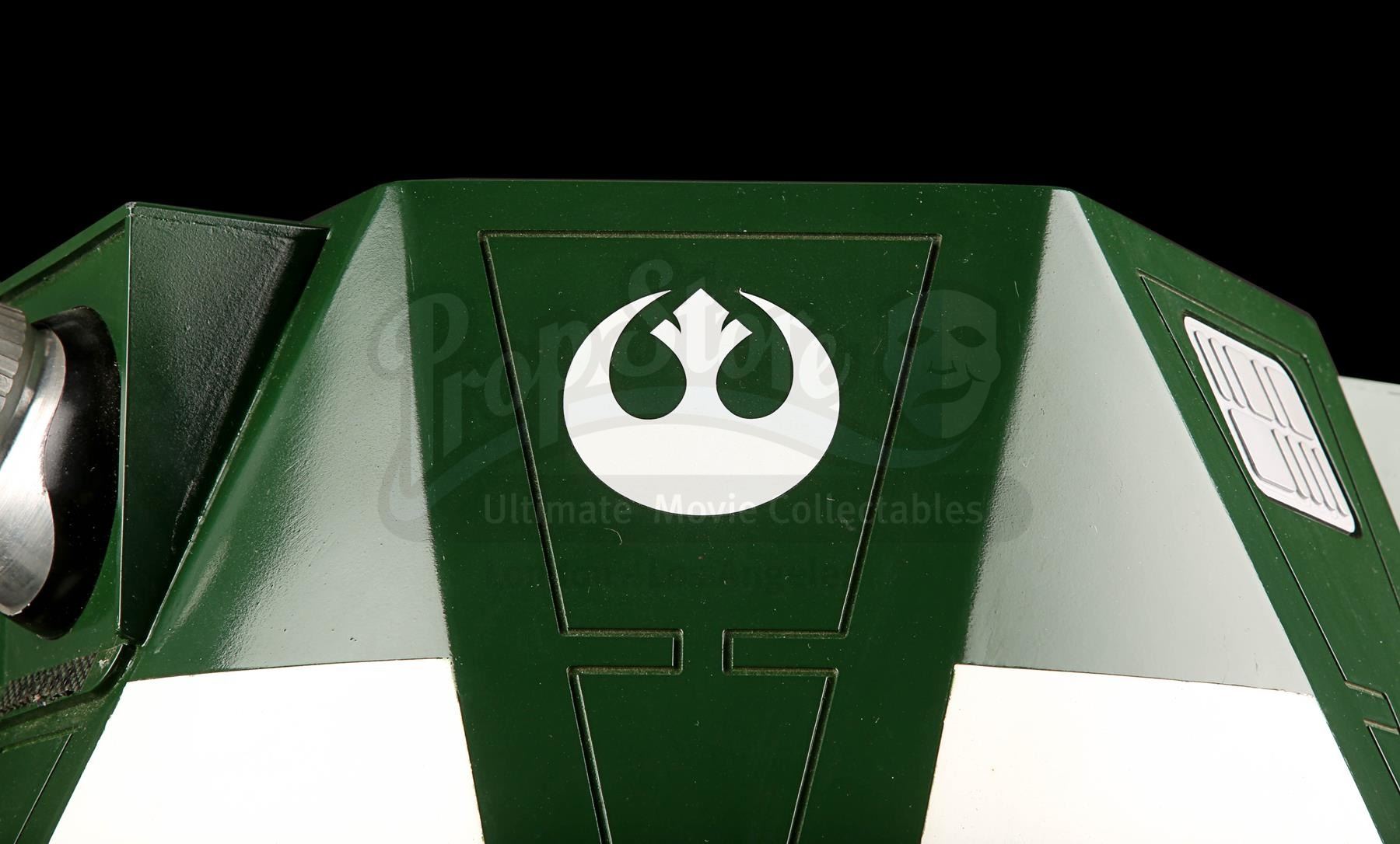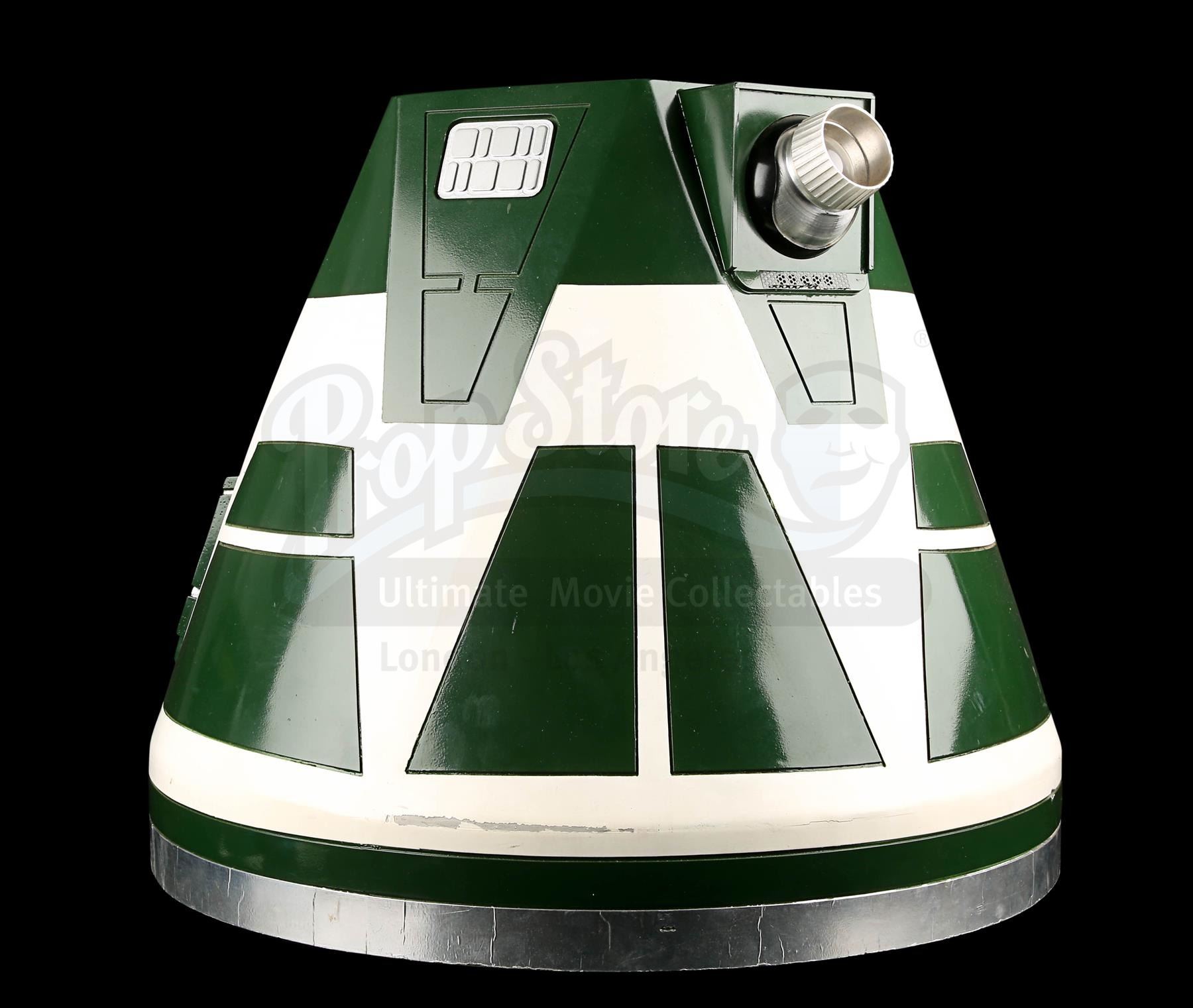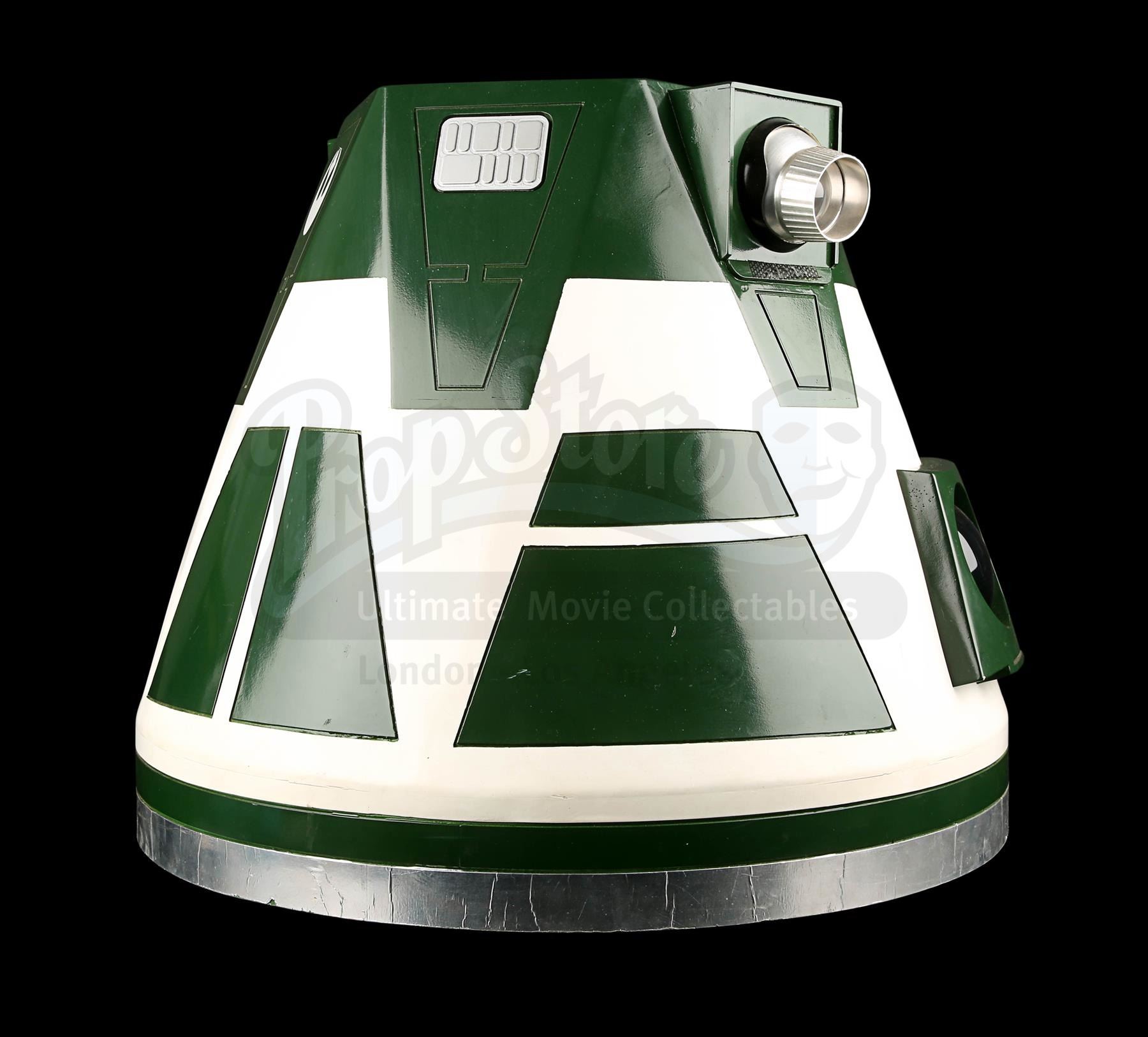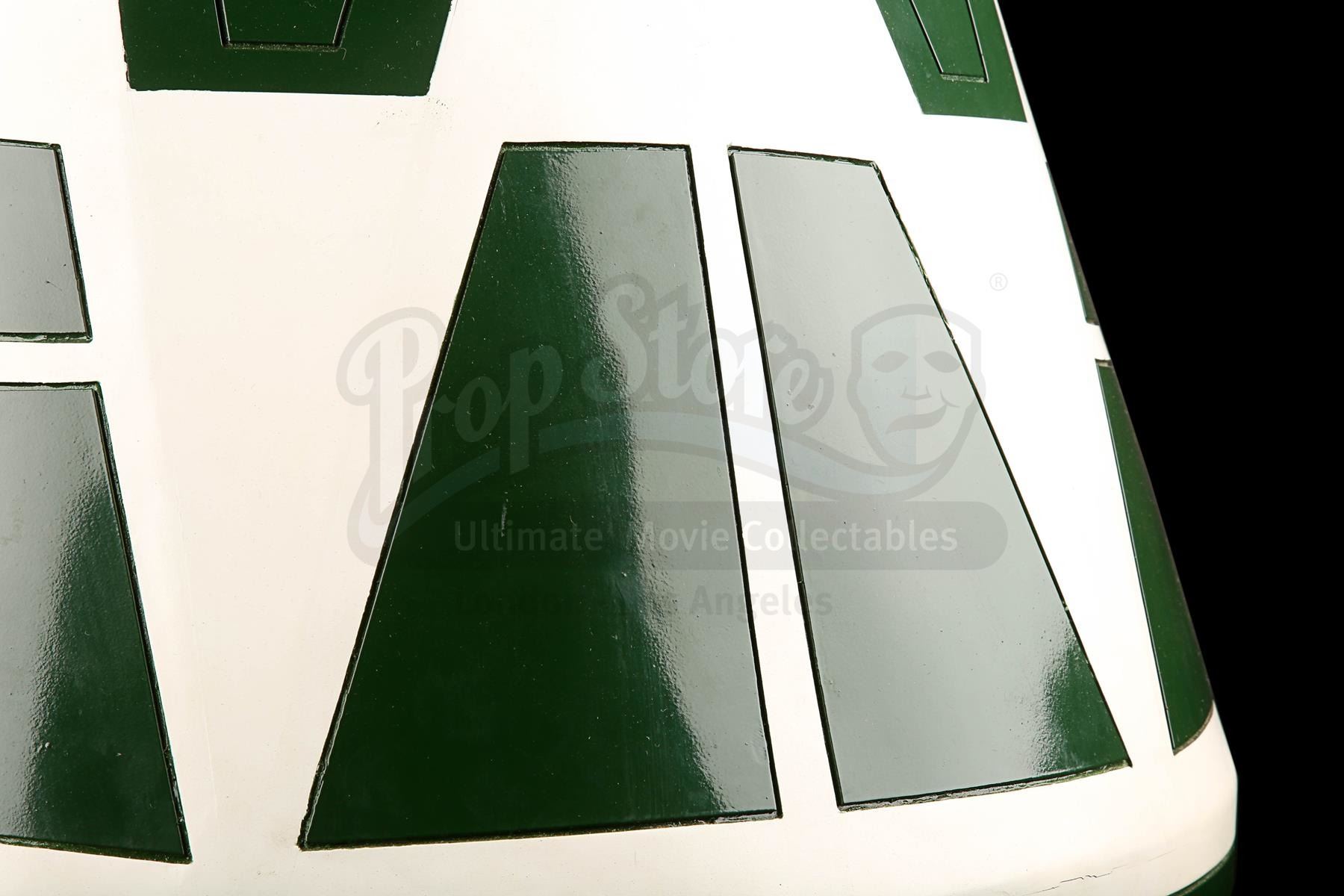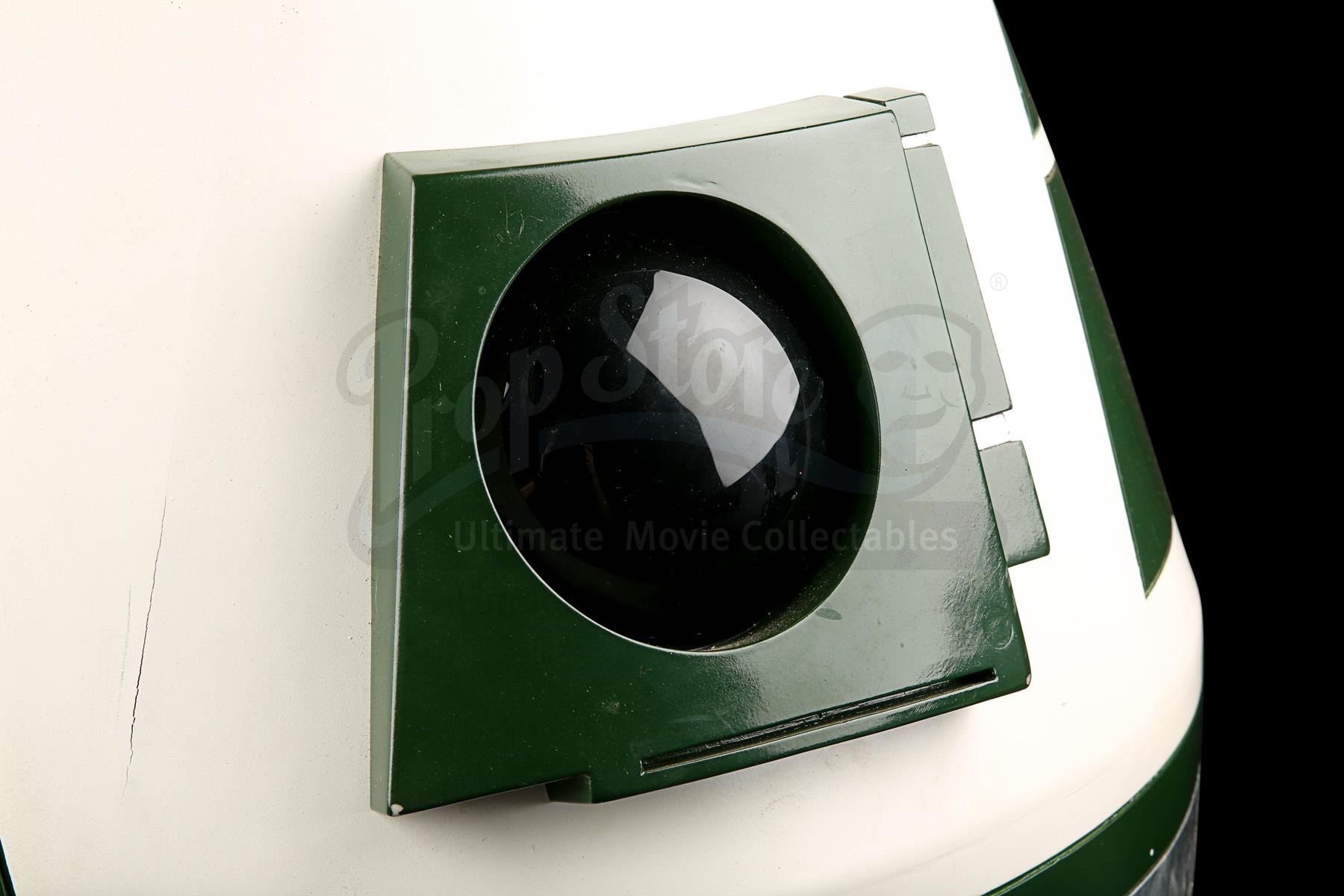 An R4-X2 astromech droid dome from Rian Johnson's Star Wars: The Last Jedi. Droids were important members of the Resistance, working to keep weapons, ships and other machinery functional. R4-X2 worked in the hangar on the main Resistance cruiser, preparing fighter craft for battle. The hanger was destroyed by Kylo Ren (Adam Driver) as Poe Dameron (Oscar Isaac) and the other Resistance pilots were getting ready to battle the First Order. R4-X2 also featured heavily in the promotion of the film, having been turned into a toy after its release, and can be found on page 21 of Star Wars: The Last Jedi ۠The Visual Dictionary.