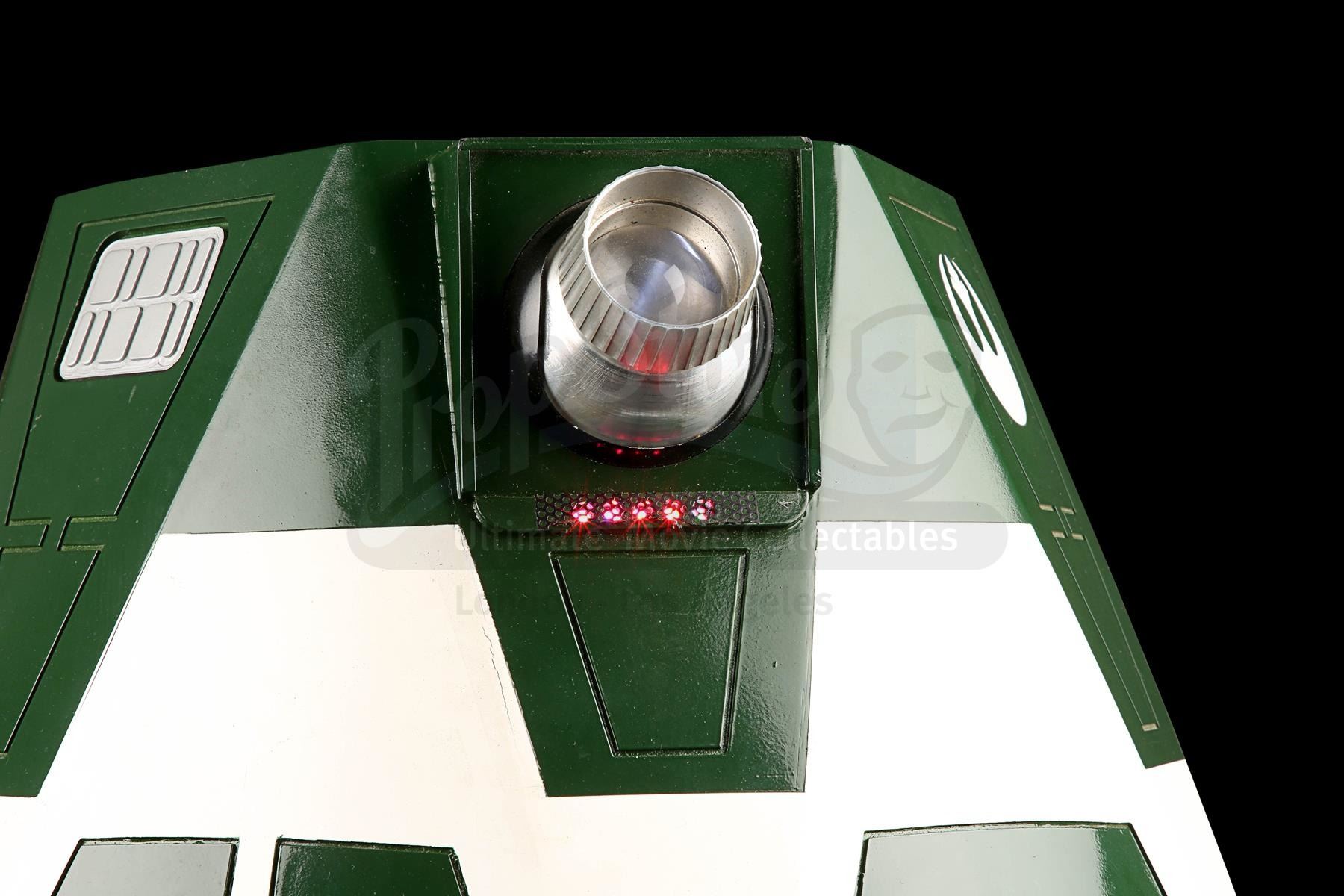 The dome is intentionally distressed in places to look worn and well used, in keeping with George Lucas' "used future" concept, like much of the technology and weaponry of the Resistance. This includes damage to the white paint on the lower ring. There is additional wear from production use, such as scuffing and scratches. The lot is accompanied by a copy of Star Wars: The Last Jedi ۠The Visual Dictionary and an official Disney toy set featuring R4-X2 and another droid, Y5-X2. Dimensions: 40 cm x 40 cm x 38 cm (15 3/4" x 15 3/4" x 15")