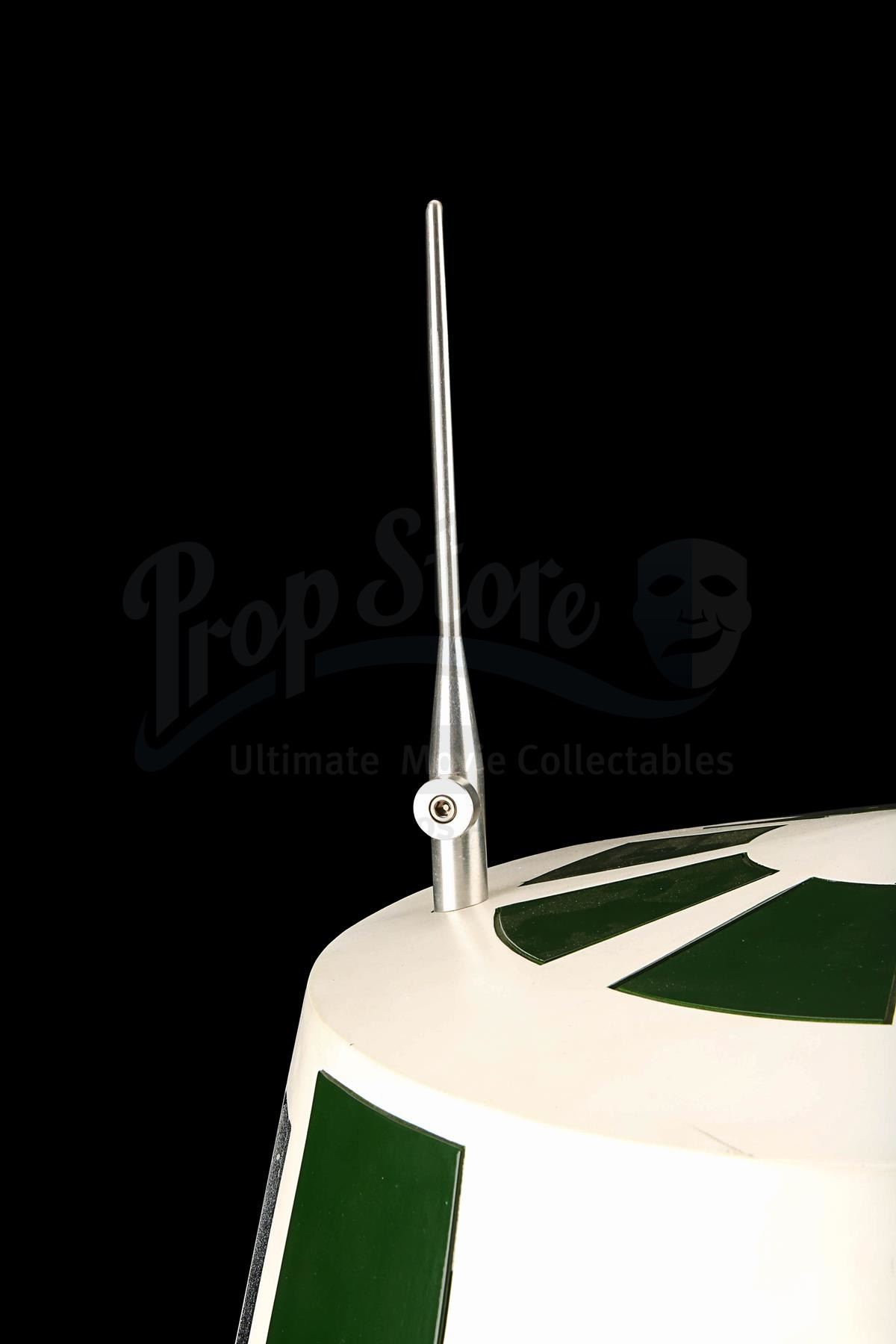 The droid dome has been intentionally distressed in places to look worn and well-used, like much of the technology and weaponry of the Resistance. This includes damage to the white paint on the lower ring. There is additional wear from production use, such as scuffing and scratches. The lot comes with the droid's power supply. Dimensions: 47 cm x 47 cm x 55 cm (18 1/2" x 18 1/2" x 21 3/4")