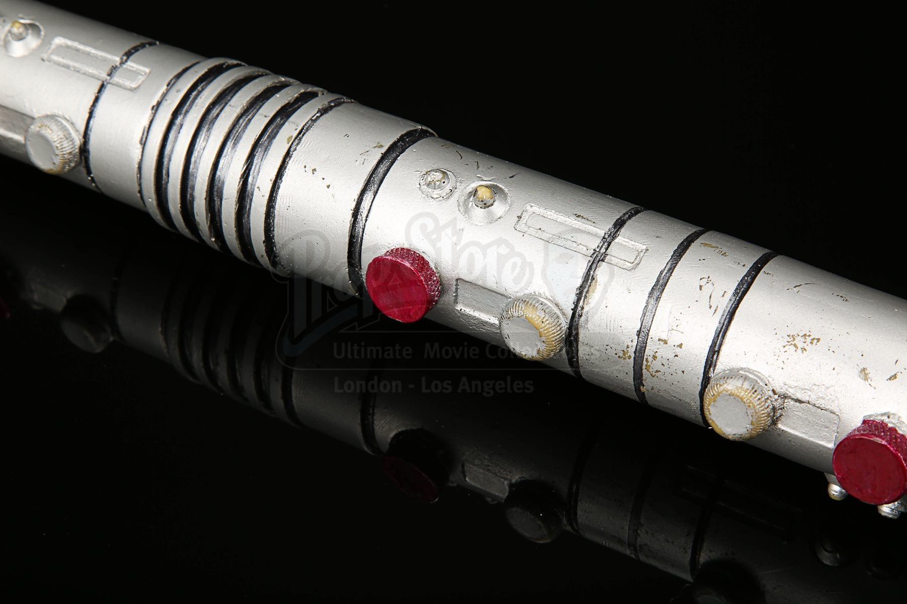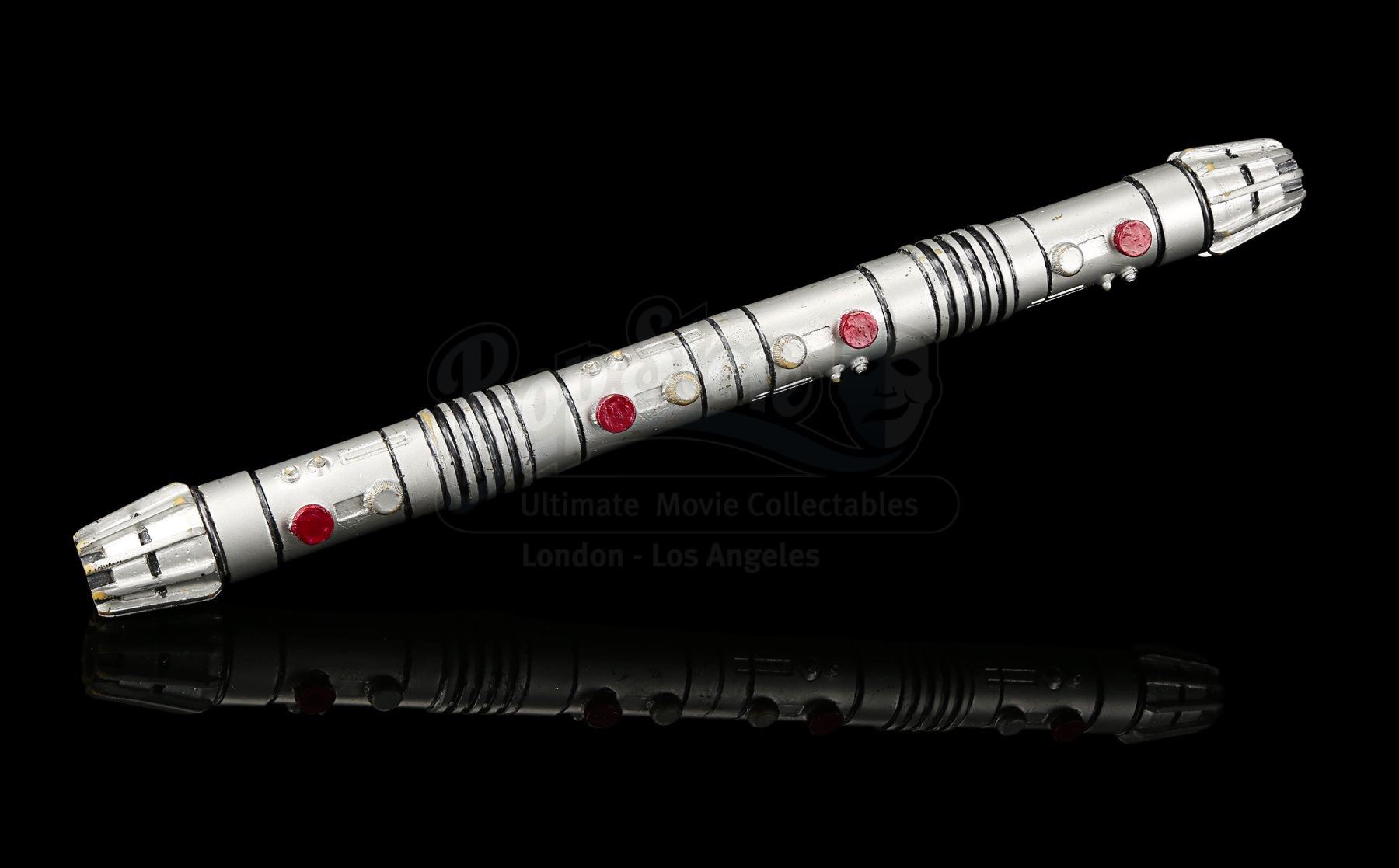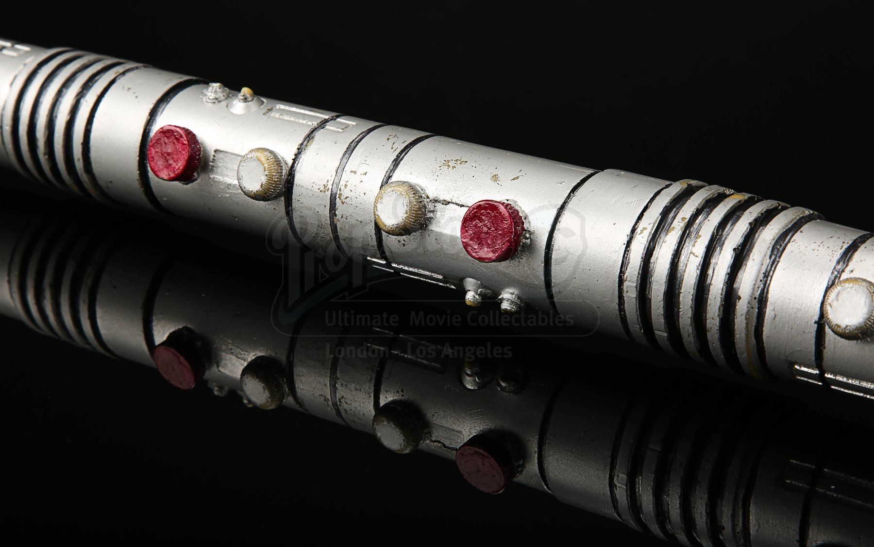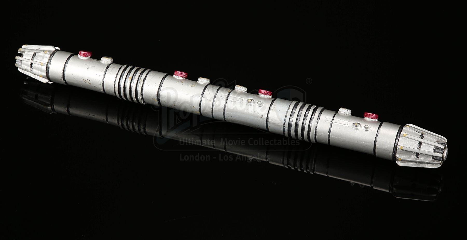 Darth Maul’s (Ray Park) lightsaber hilt from Star Wars: The Phantom Menace. This version of the lightsaber was created specifically for stunt purposes during the final battle sequence in Theed Palace, in which the Sith Apprentice fought Qui-Gon Jinn (Liam Neeson) and Obi-Wan Kenobi (Ewan McGregor).