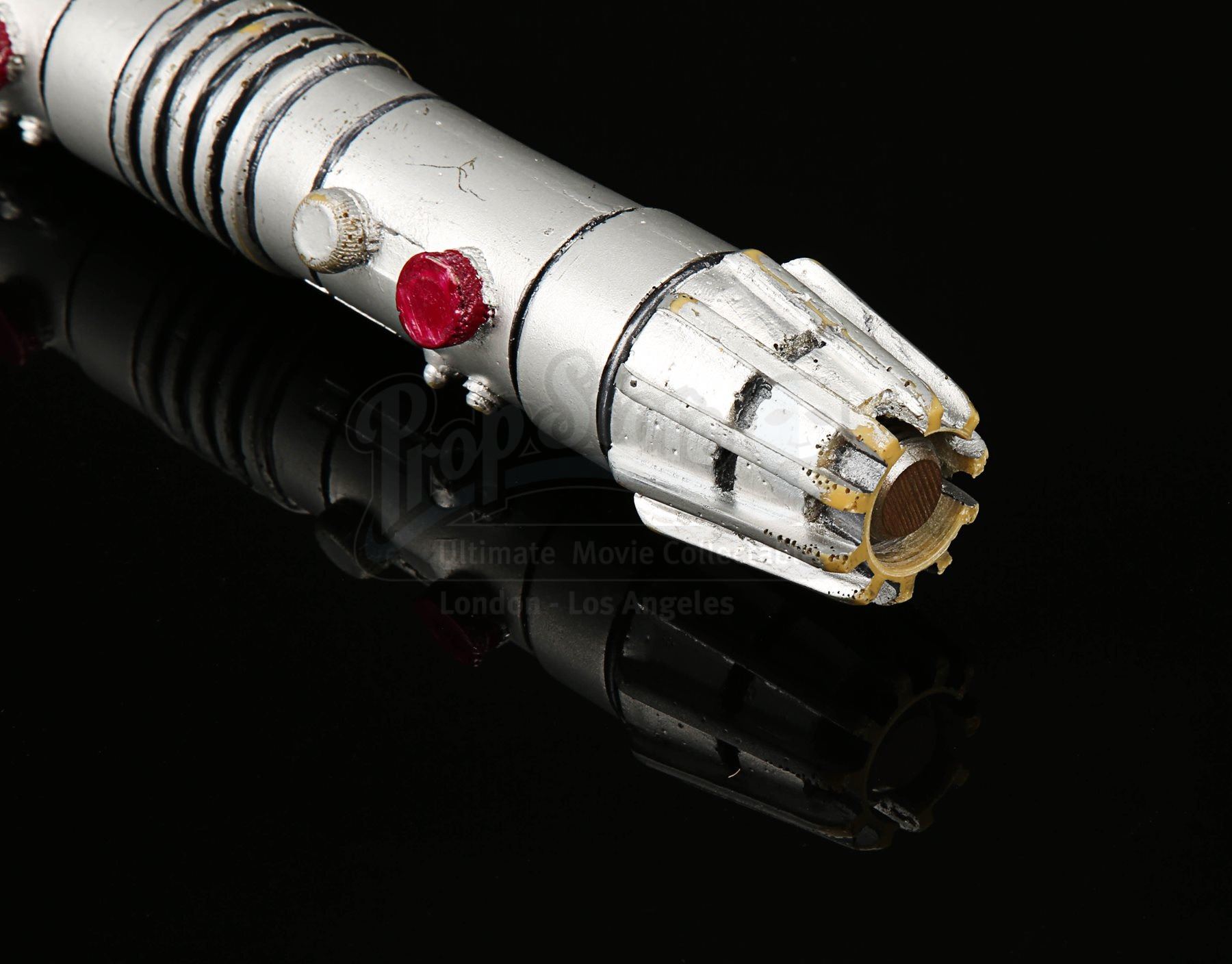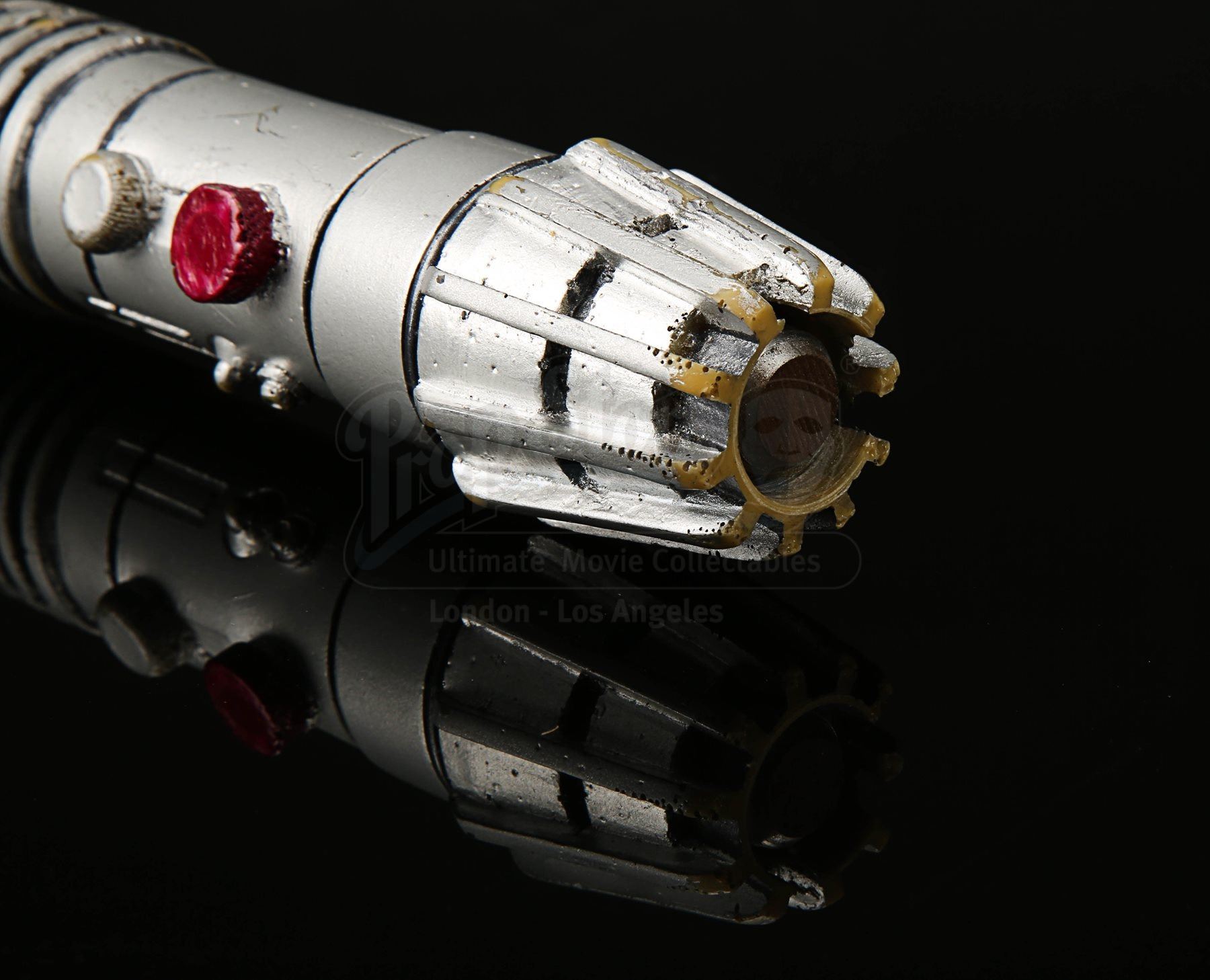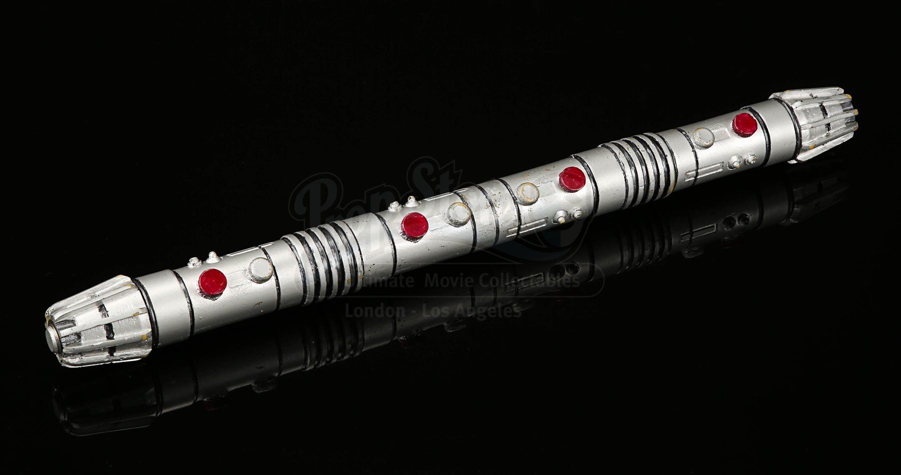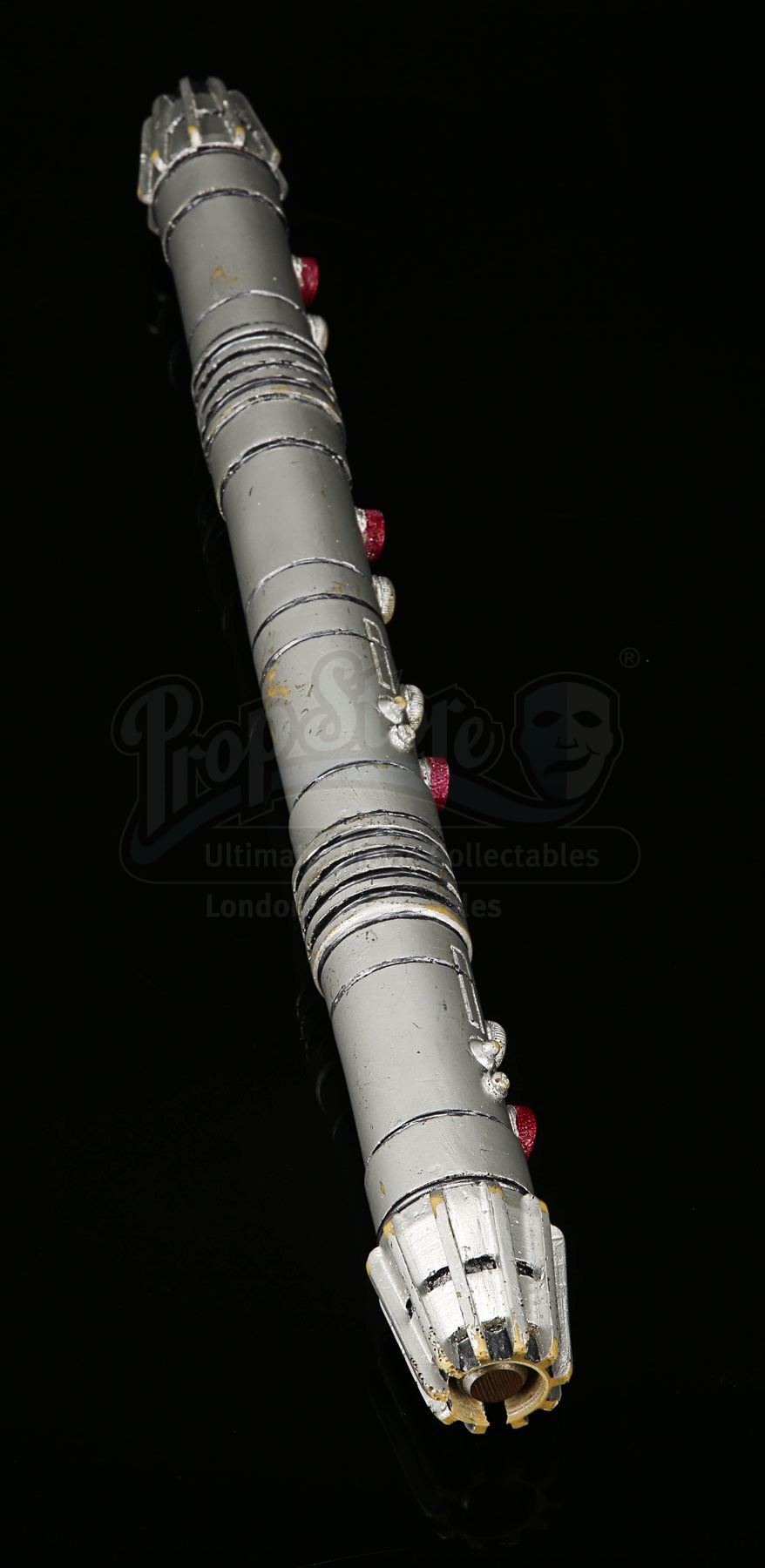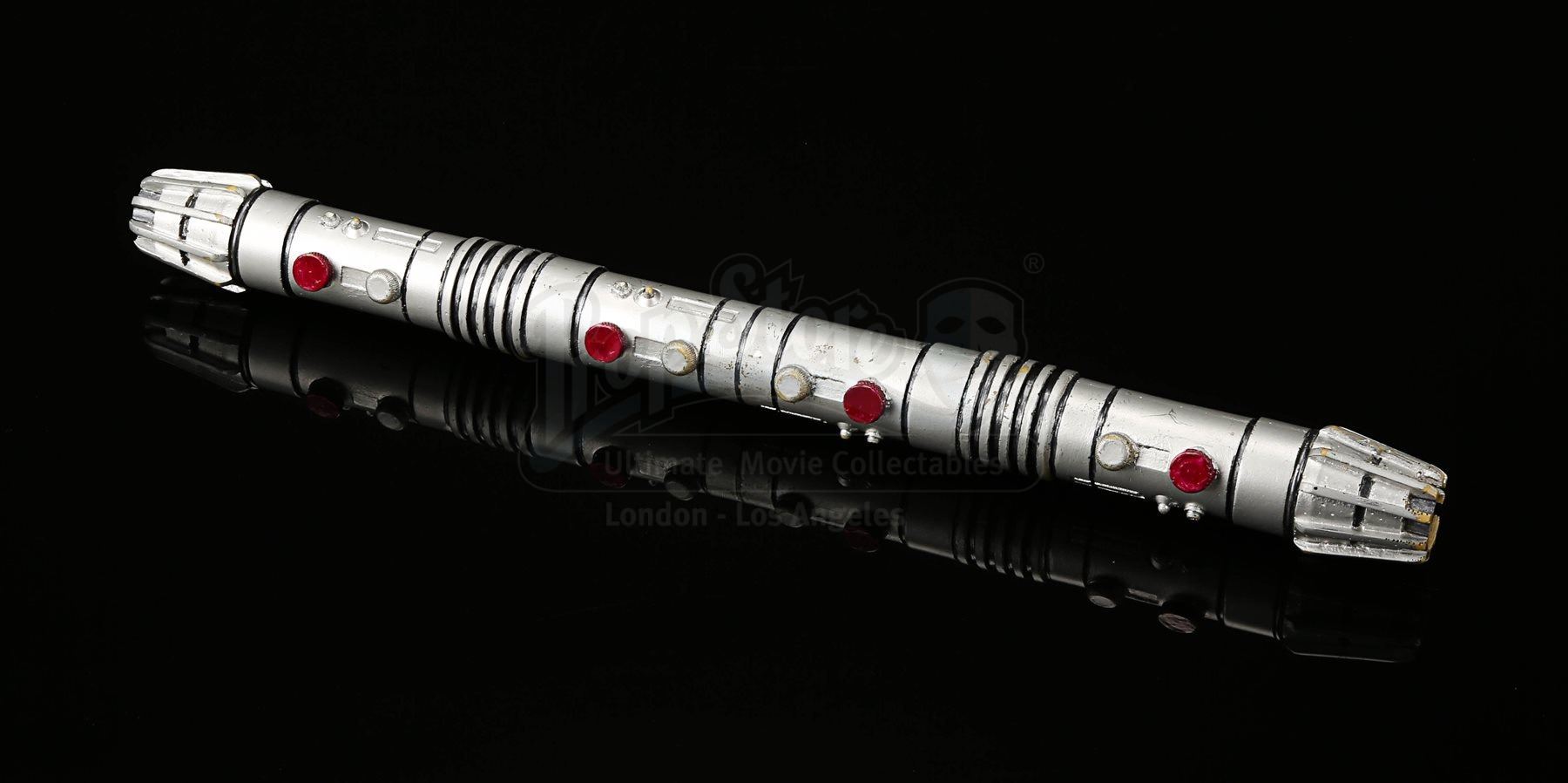 Darth Maul’s (Ray Park) lightsaber hilt from Star Wars: The Phantom Menace. This version of the lightsaber was created specifically for stunt purposes during the final battle sequence in Theed Palace, in which the Sith Apprentice fought Qui-Gon Jinn (Liam Neeson) and Obi-Wan Kenobi (Ewan McGregor).
