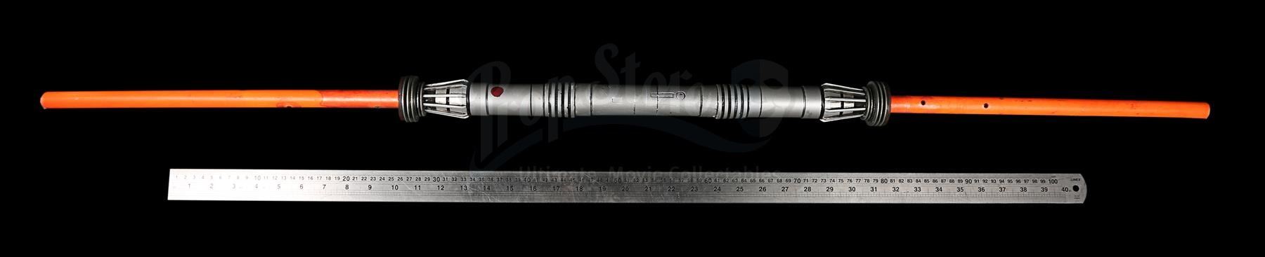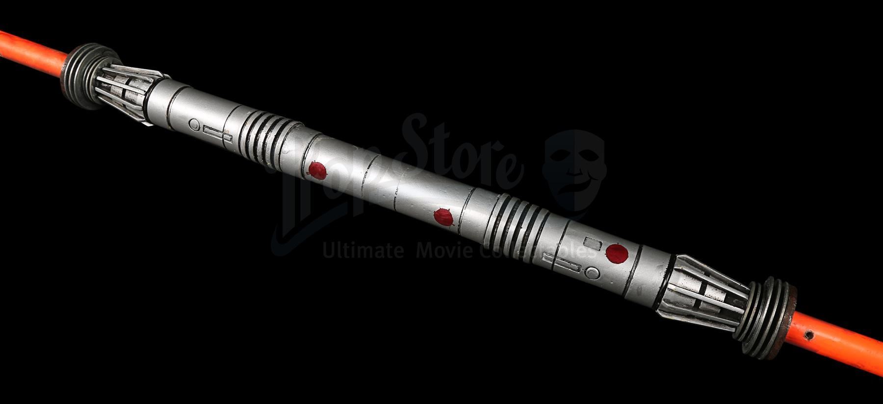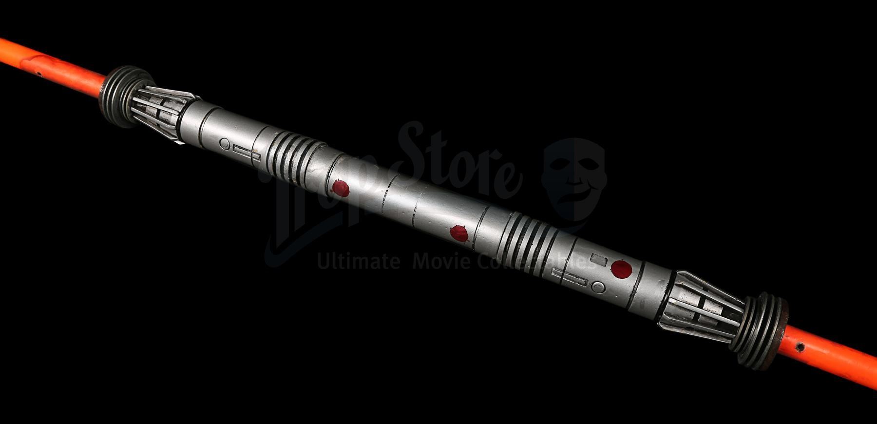Darth Maul's (Ray Park) lightsaber with close-action fighting blades from Star Wars: The Phantom Menace. Darth Maul masterfully wielded his lightsaber during the final battle sequence in Theed Palace, where the Sith apprentice fought Qui-Gon Jinn (Liam Neeson) and Obi-Wan Kenobi (Ewan McGregor).