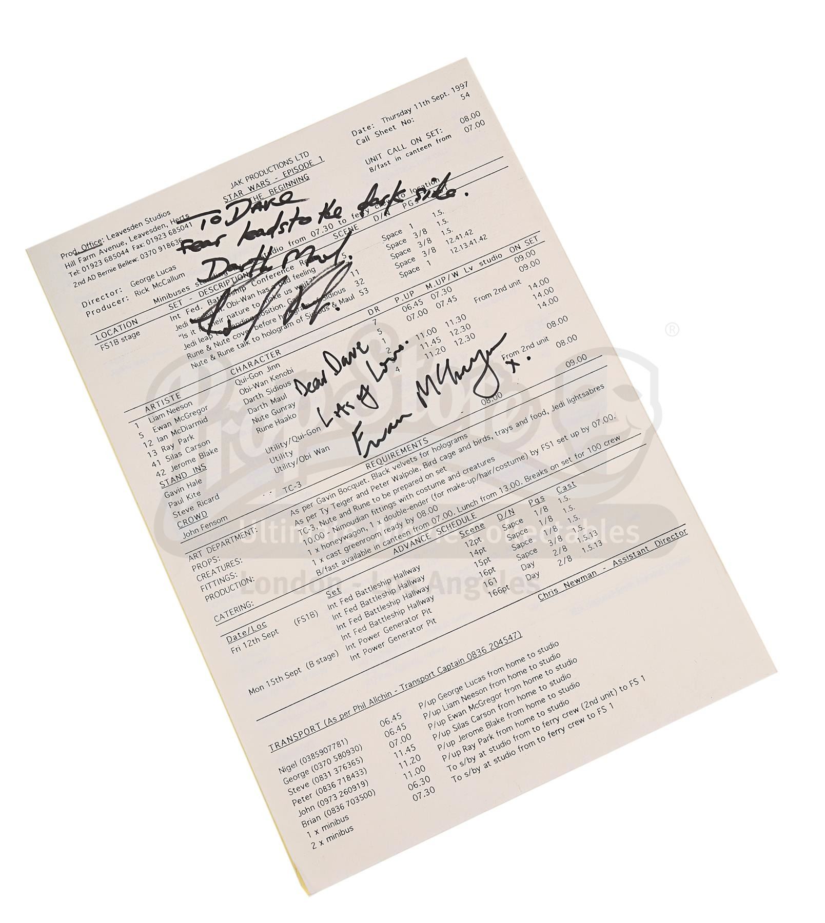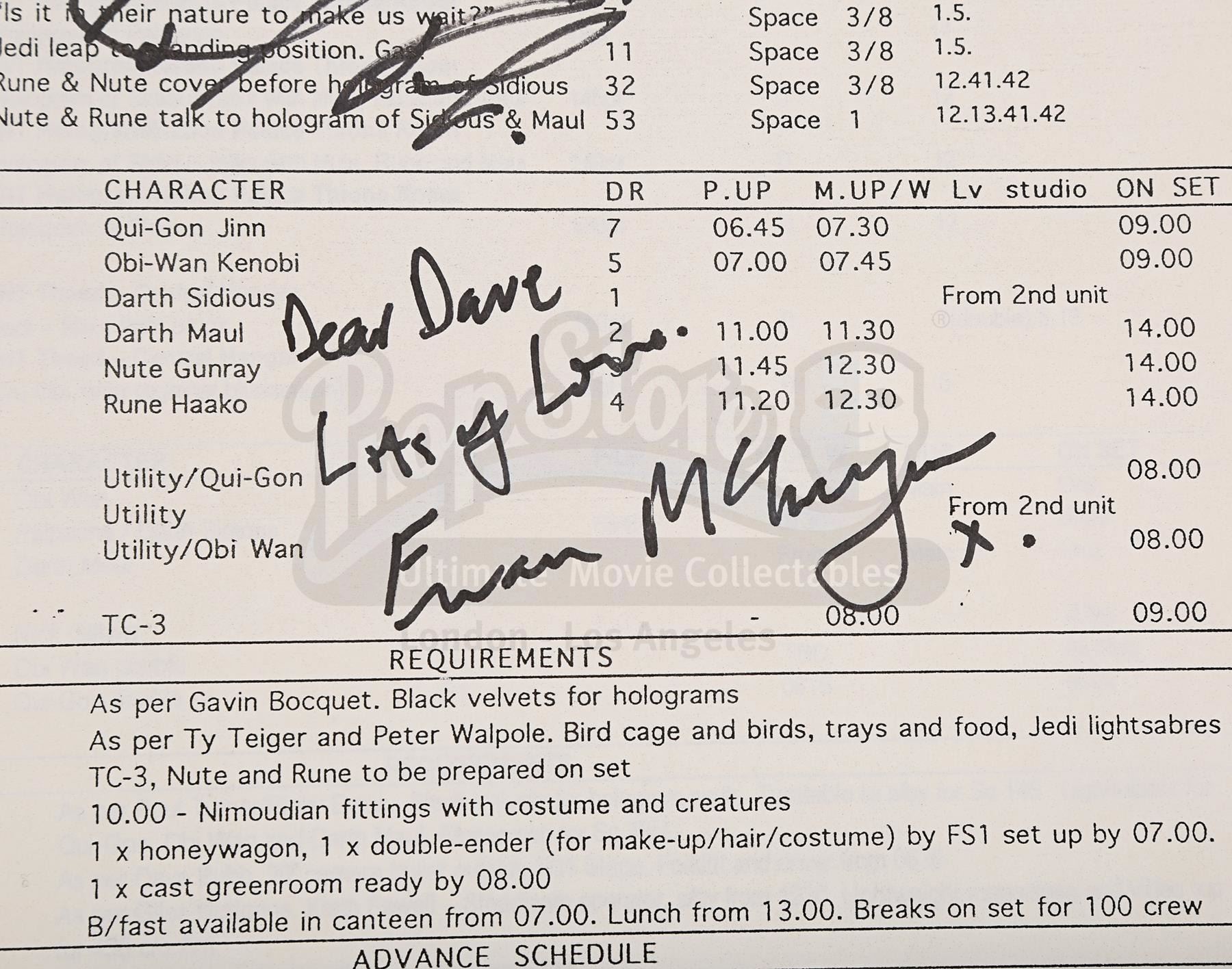 STAR WARS: THE PHANTOM MENACE (1999) - Ray Park and Ewan McGregor Autographed Call Sheet