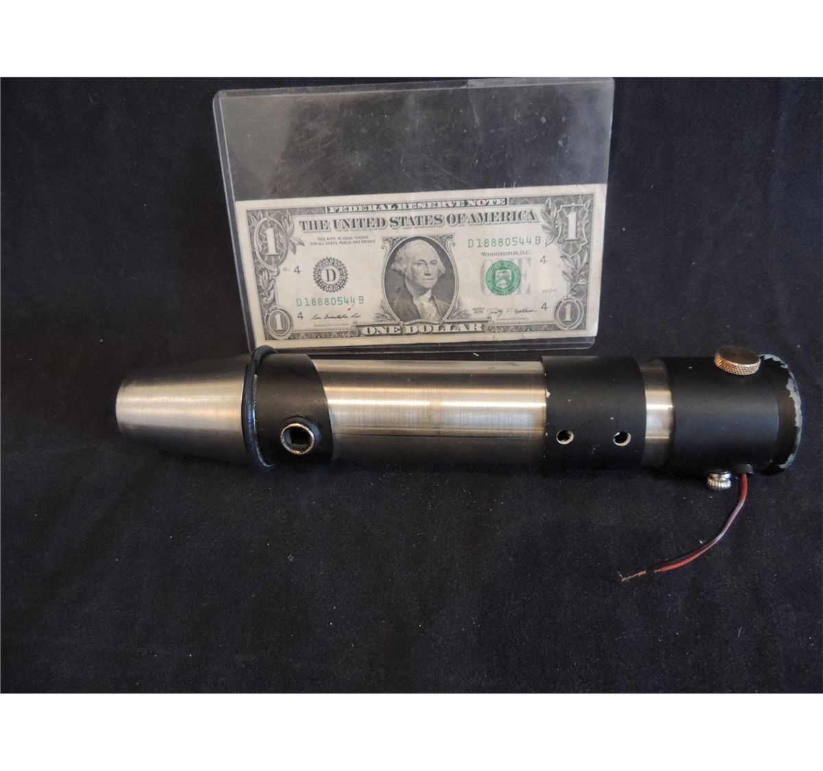 This is a OOAK though incomplete and 2 of 3 Prototype MACE WINDU Lightsaber from the original production of STAR WARS EPISODE 1, THE PHANTOM MENACE! This has heavy gauge wires and what looks to be a detonator to charge neon or other gas to give the effect of what is seen on film.