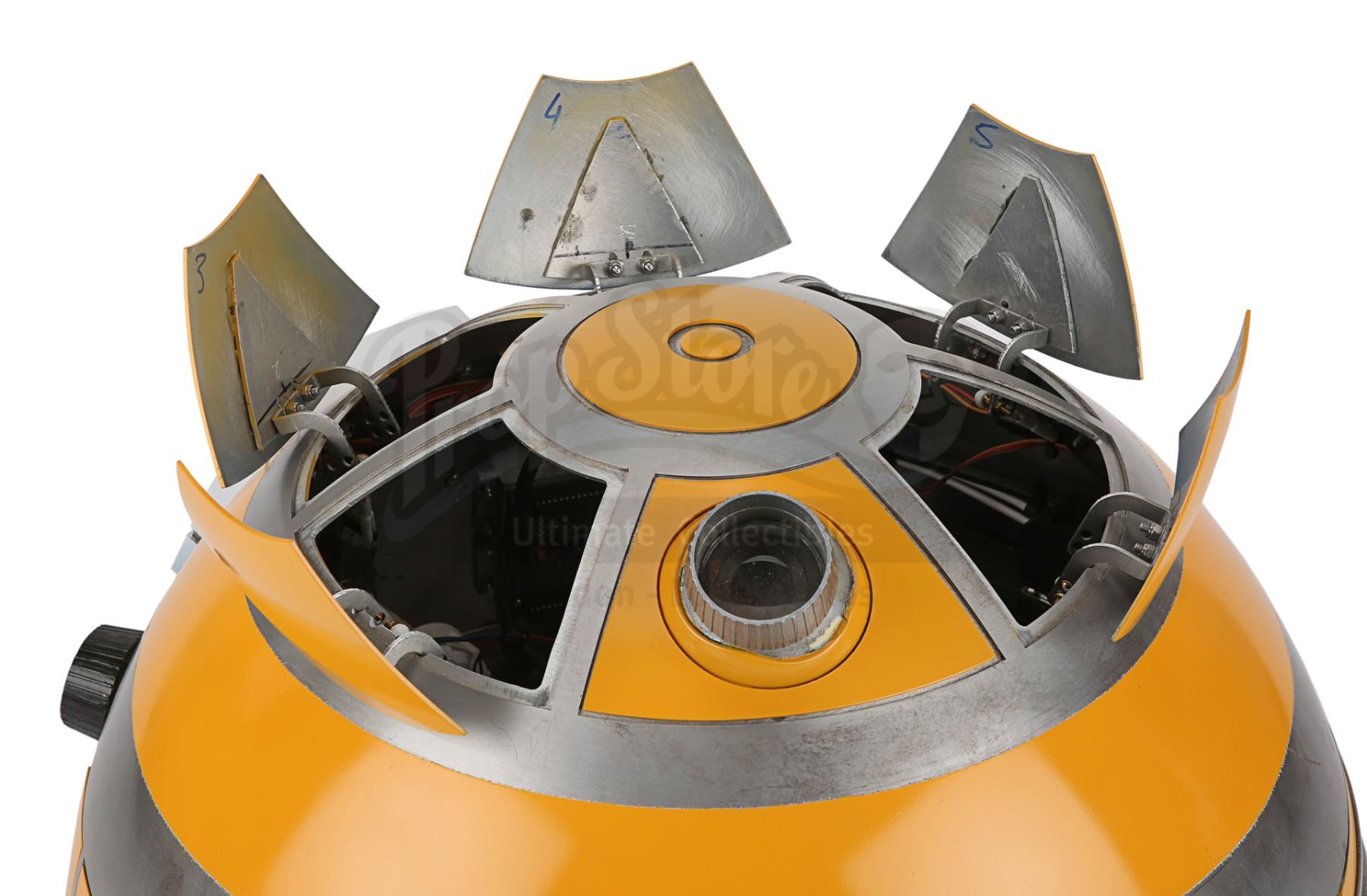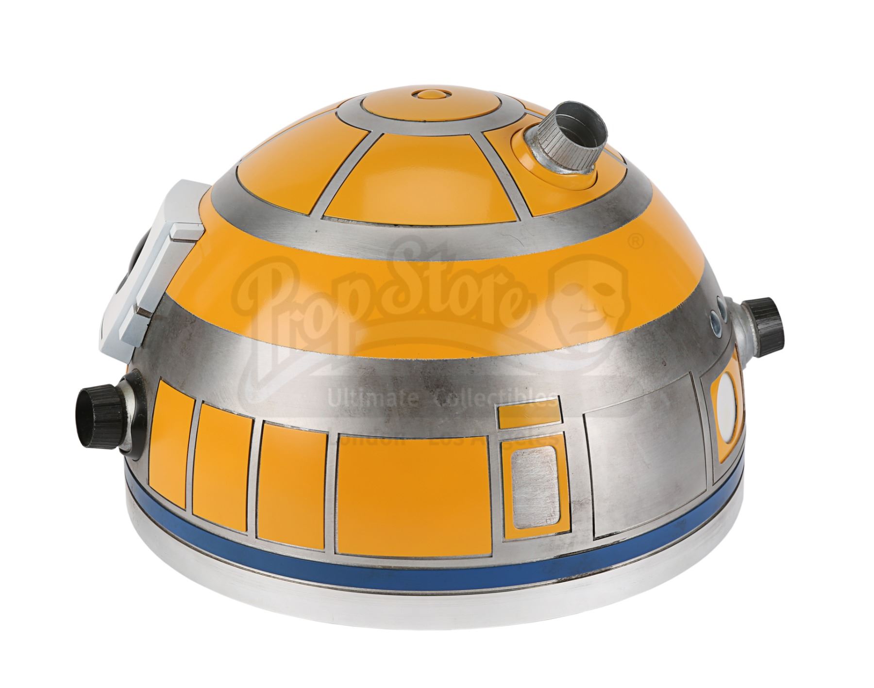 A fully mechanised R2 droid head from the production of J.J. Abrams' Star Wars: The Rise of Skywalker. R2 astromech droids were a common sight in the Star Wars universe, operating mostly as diagnostic and repair units. Although not seen in the final cut of the film, this R2 droid head was provided to the production for filming and is fully mechanised.