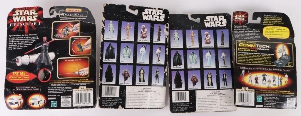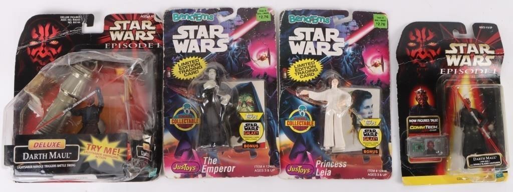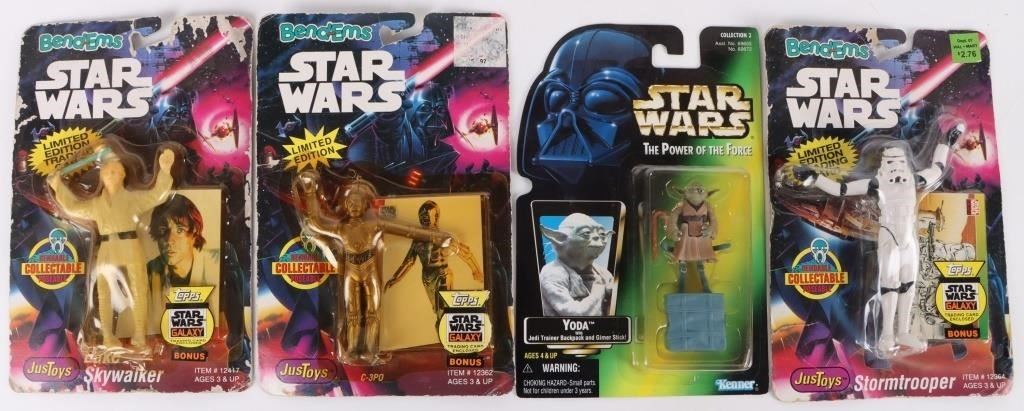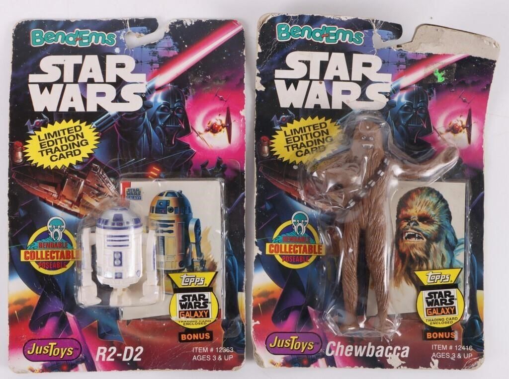 Star Wars Vintage Figures Collection to include: 1993 Bend-Ems Star Wars The Emperor, Luke Skywalker, Chewbacca, Stormtrooper, Princess Leia, C-3PO, & amp; R2-D2. 1997 Kenner Star Wars: The Power of the Force Yoda (with Jedi Trainer Backpack and Gimer Stick). 1998 Hasbro Star Wars: Episode 1 Darth Maul & amp; Darth Maul Deluxe Figures.