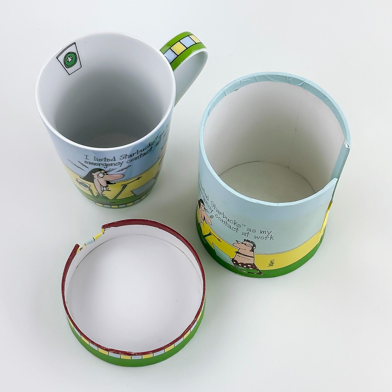 #8805 - HUMOROUS SIMPLY FUNNY COFFEE MUG CUP. COMIC CHARACTER MUG THAT READS: I LISTED STARBUCKS AS MY EMERGENCY CONTACT AT WORK. MUG IS IN IT’S ORIGINAL CARDBOARD STYLE PACKAGING. HOME KITCHEN OFFICE KITCHENWARE COFFEE MUG