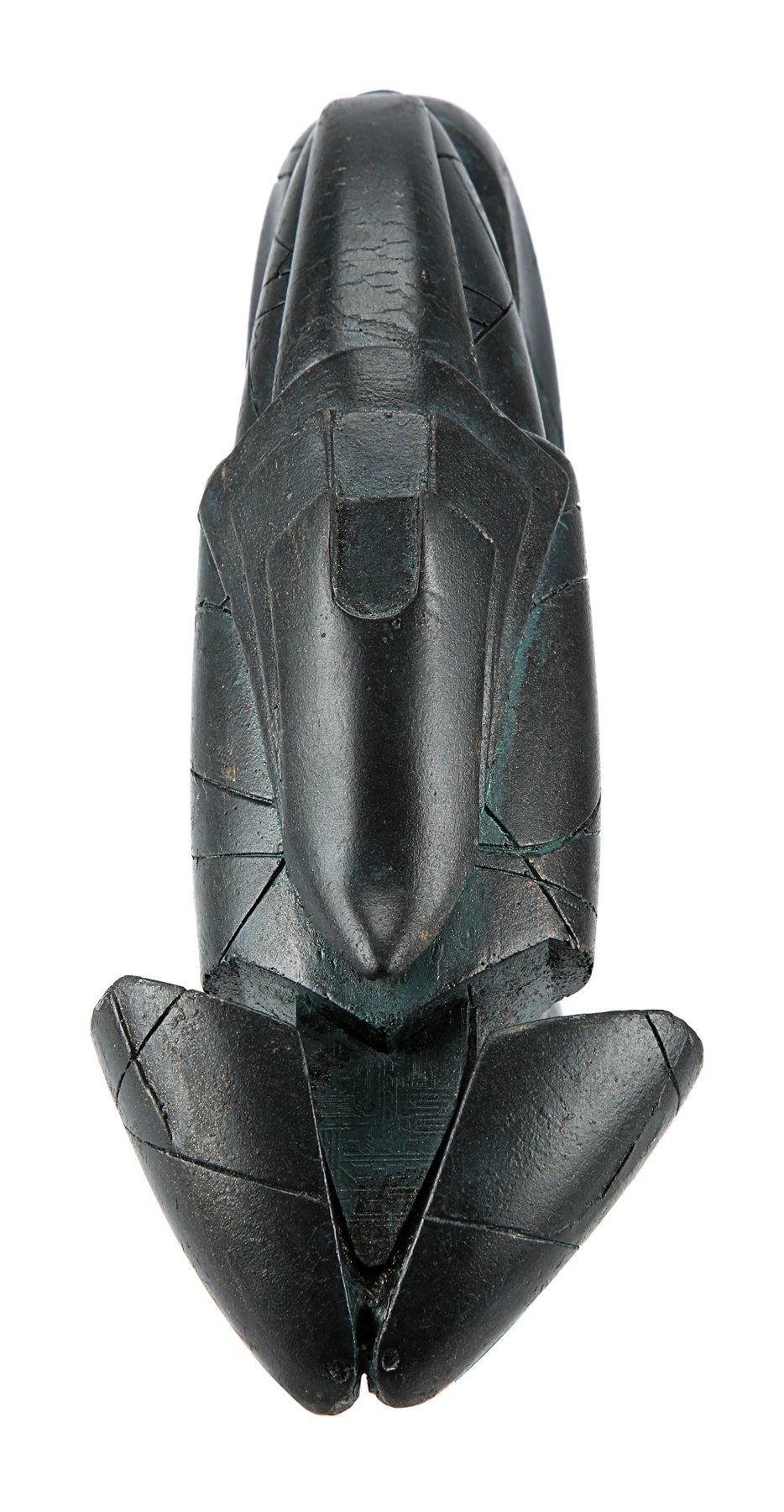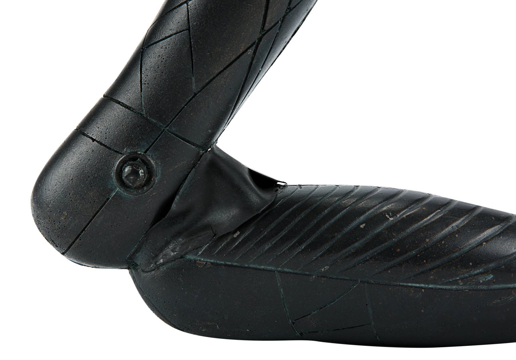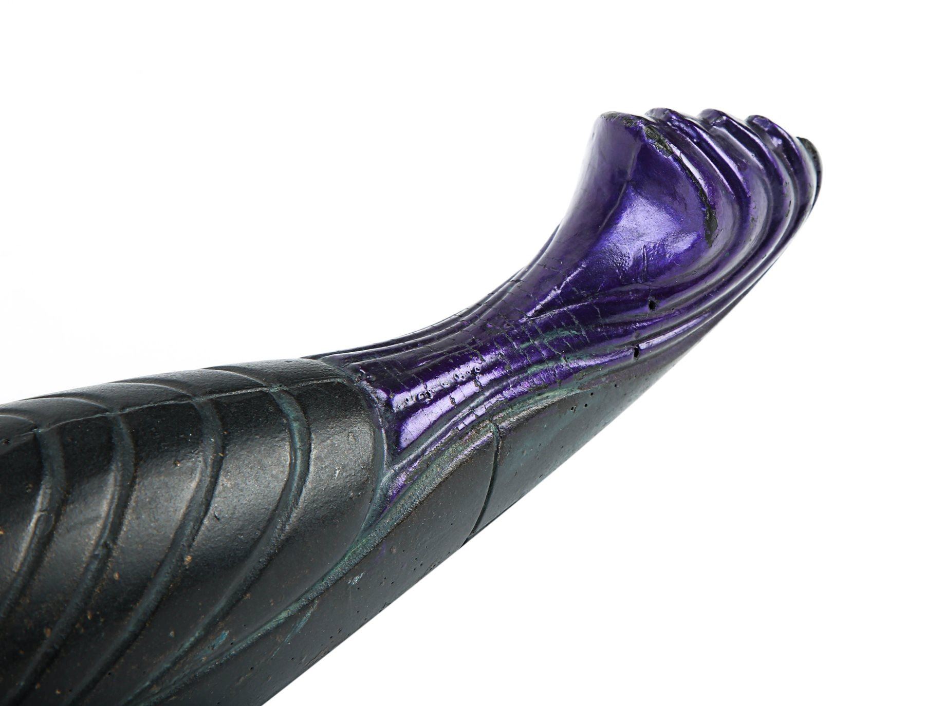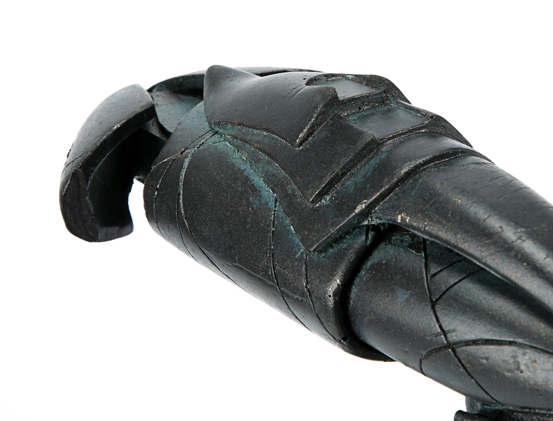 Made of dense rubber, the weapon is shaped like a serpent and comes fixed in an open state. The gun has been finished in black with green accents and the lower end of the piece is finished in purple. Cast-in line detailing features all over and pieces of thin black rubber have been applied to cover hinges. The Zat gun shows wear to the paintwork and damage to one side, exposing the core of the piece. This lot is accompanied by a studio certificate of authenticity. Dimensions: 28 cm x 8 cm x 18 cm (11” x 3 ¼” x 7 ¼”)