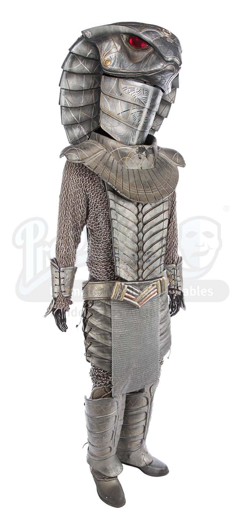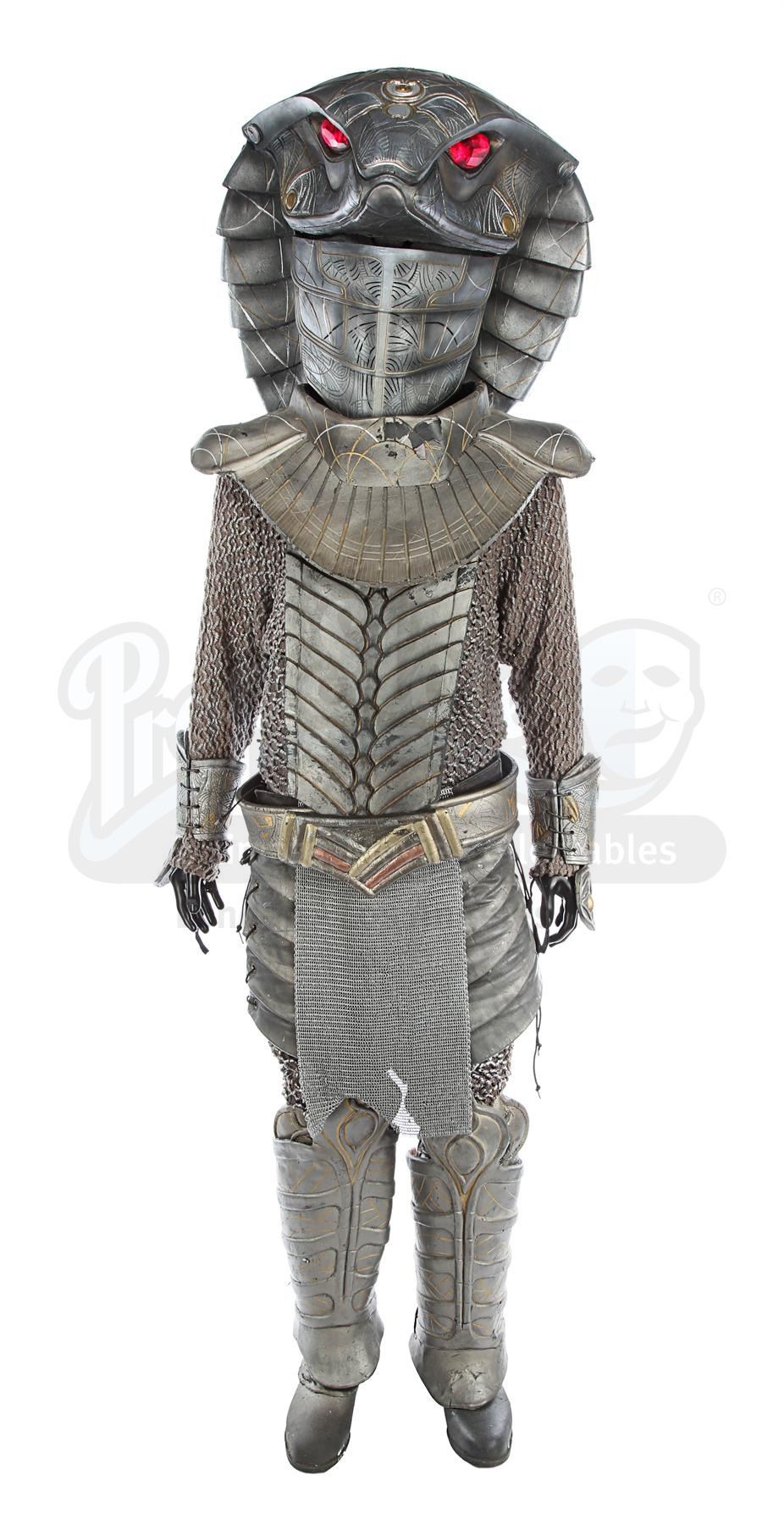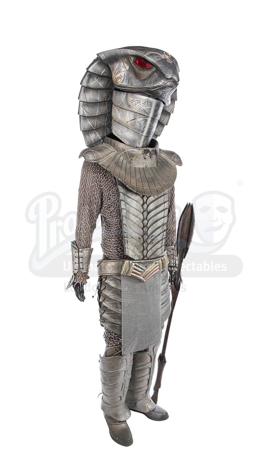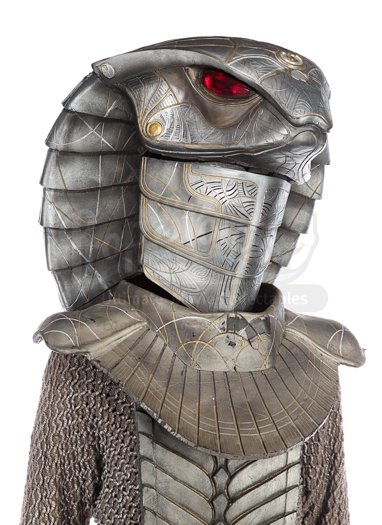 A Serpent Jaffa Warrior costume from the sci-fi television show Stargate SG-1. Genetically engineered by the Goa'uld, the Jaffa served as soldiers for the main antagonists throughout the first eight seasons.