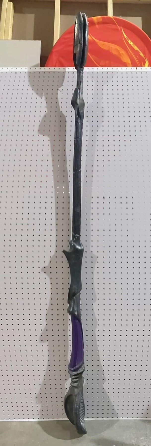 . It is approx. 84” in length, the front is Oval shaped which resembles a barrel of a weapon, the back end has a club shape for striking enemies. Much can be said about this Staff, but Stargate fans will you will know all about this magnificent piece. This is an original used in SG, and is one of only originals on market, 5 years ago we one that sold for 13k C$. If you a stargate or a movie buff, this an investment and will only increase in value!!