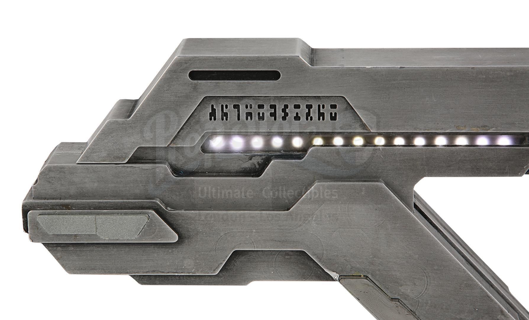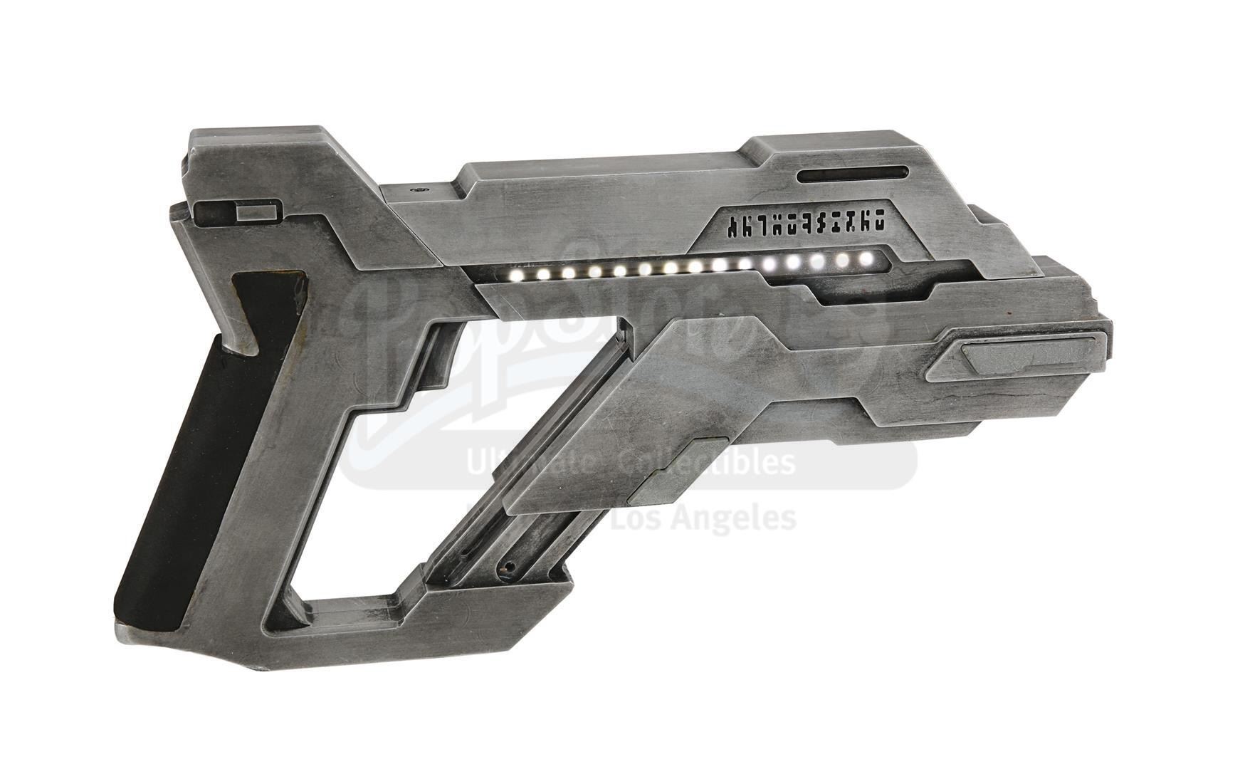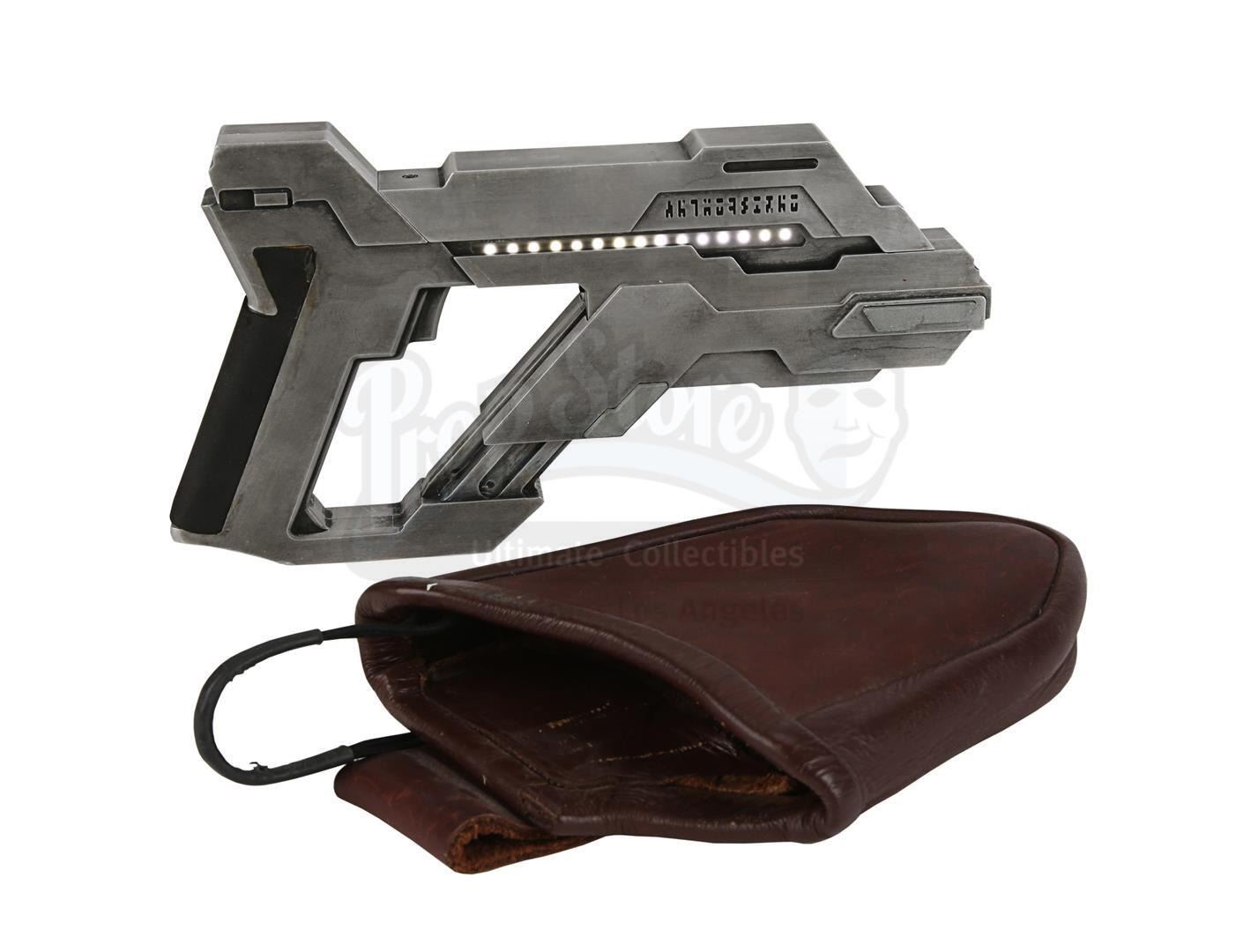 A light-up Asuran Replicator stunner and holster from the sci-fi television show Stargate: Atlantis. Asuran Replicators used their stunners during the third and fourth seasons of the show to incapacitate or kill their enemies.