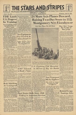 STARS AND STRIPES Newspaper Dated, April 21 1943, measures 17.5 inches x 12 inches MWF2410