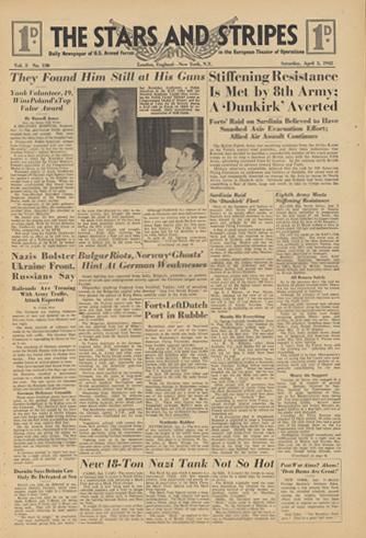 STARS AND STRIPES Newspaper Dated, April 3 1943, measures 17.5 inches x 12 inches MWF2411