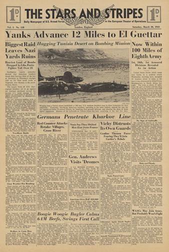 STARS AND STRIPES Newspaper Dated, March 20 1943, measures 17.5 inches x 12 inches MWF2413
