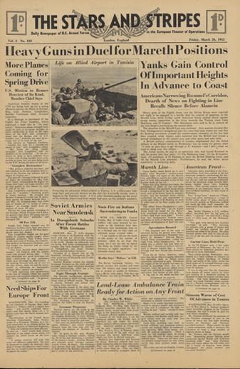 STARS AND STRIPES Newspaper Dated, March 26 1943, measures 17.5 inches x 12 inches MWF2412