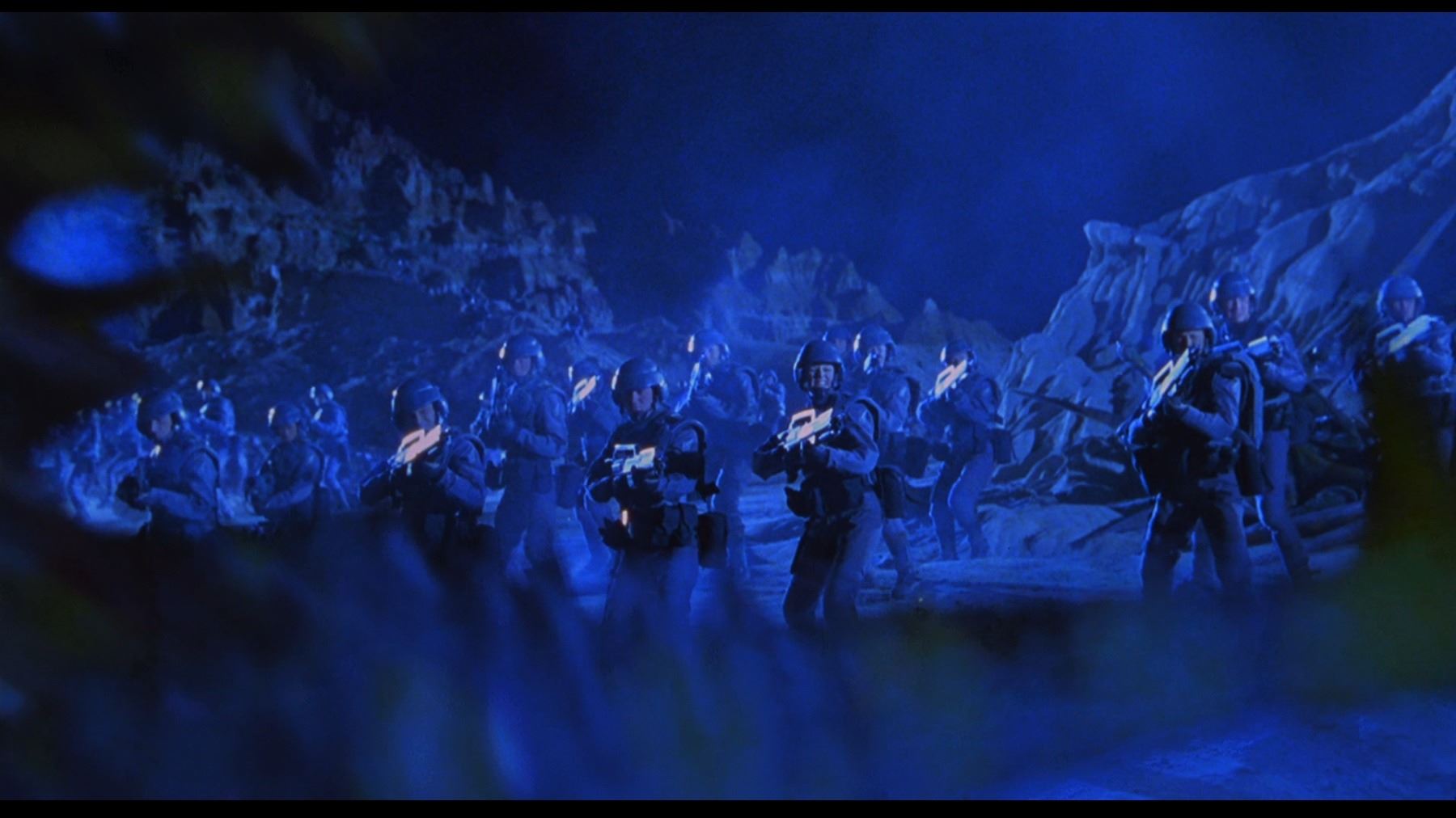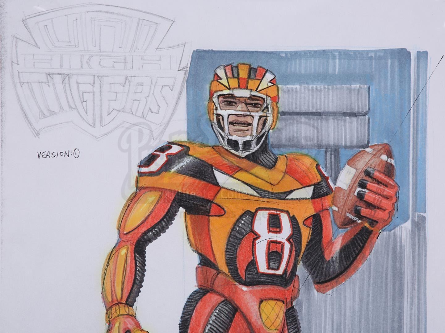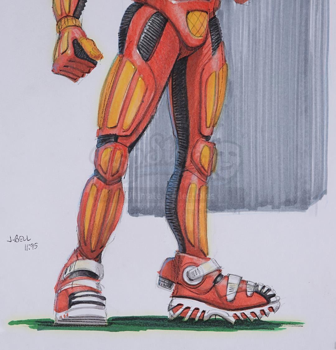 A pair of hand-painted concepts for Johnny Rico (Casper Van Dien) from the production of Paul Verhoeven's sci-fi action film Starship Troopers. John Bell created these two concept artworks, one of which shows Rico in his jumpball uniform and the other in his Mobile Infantry uniform.