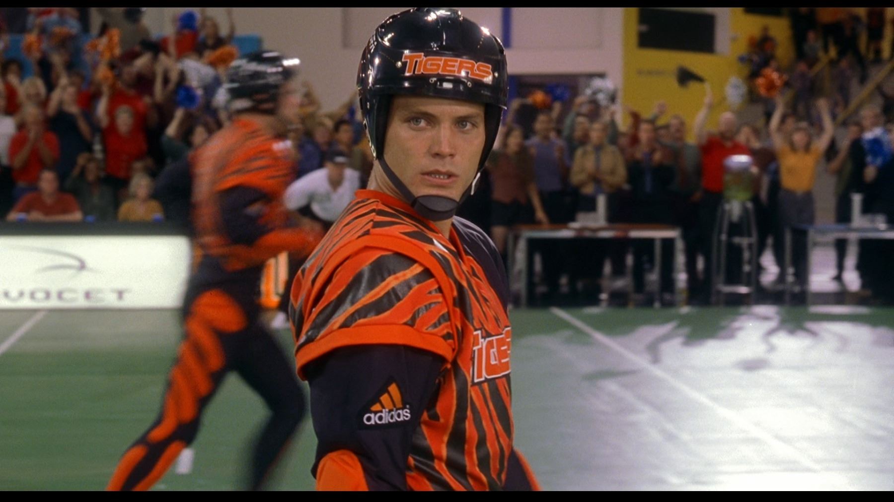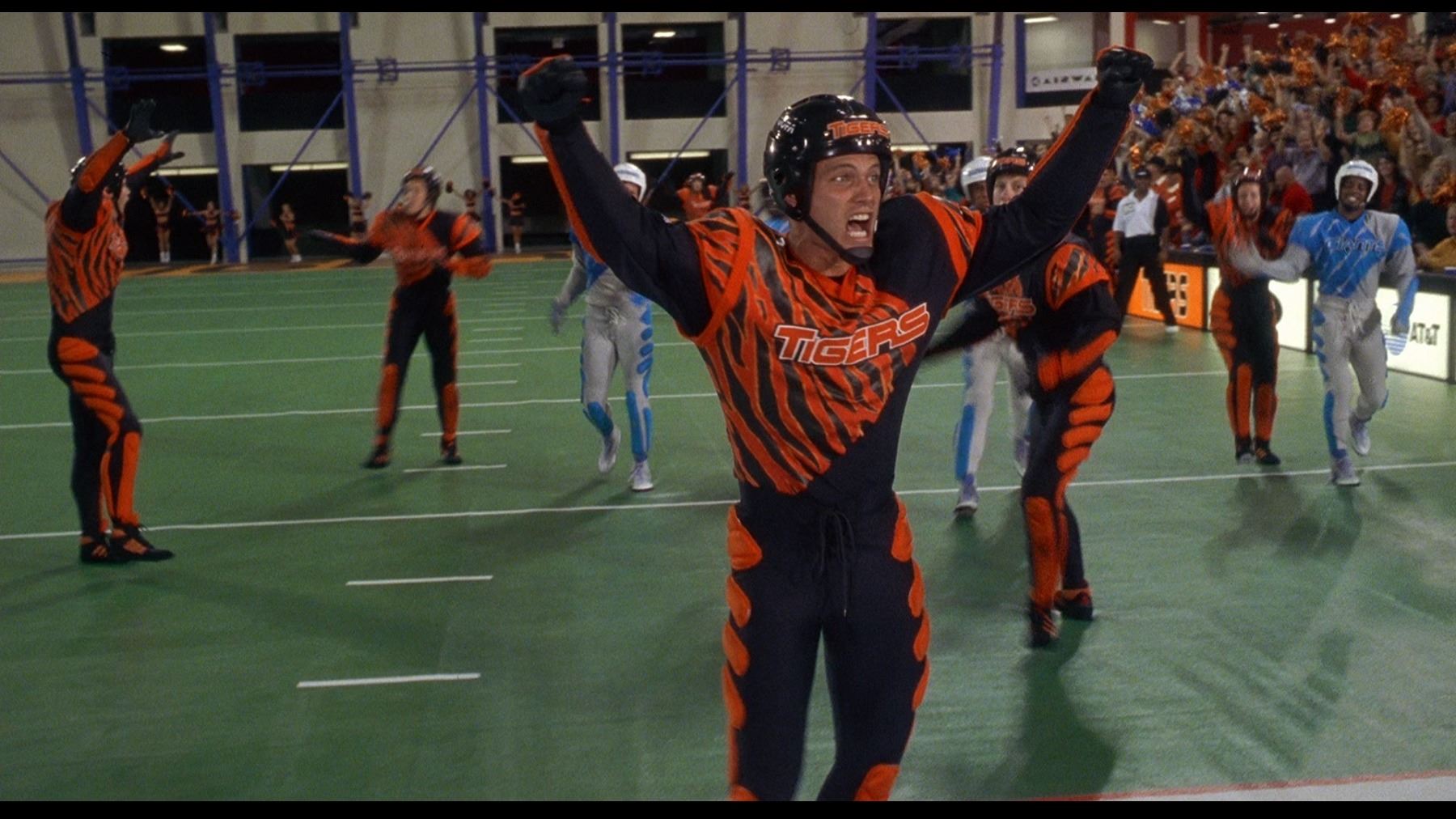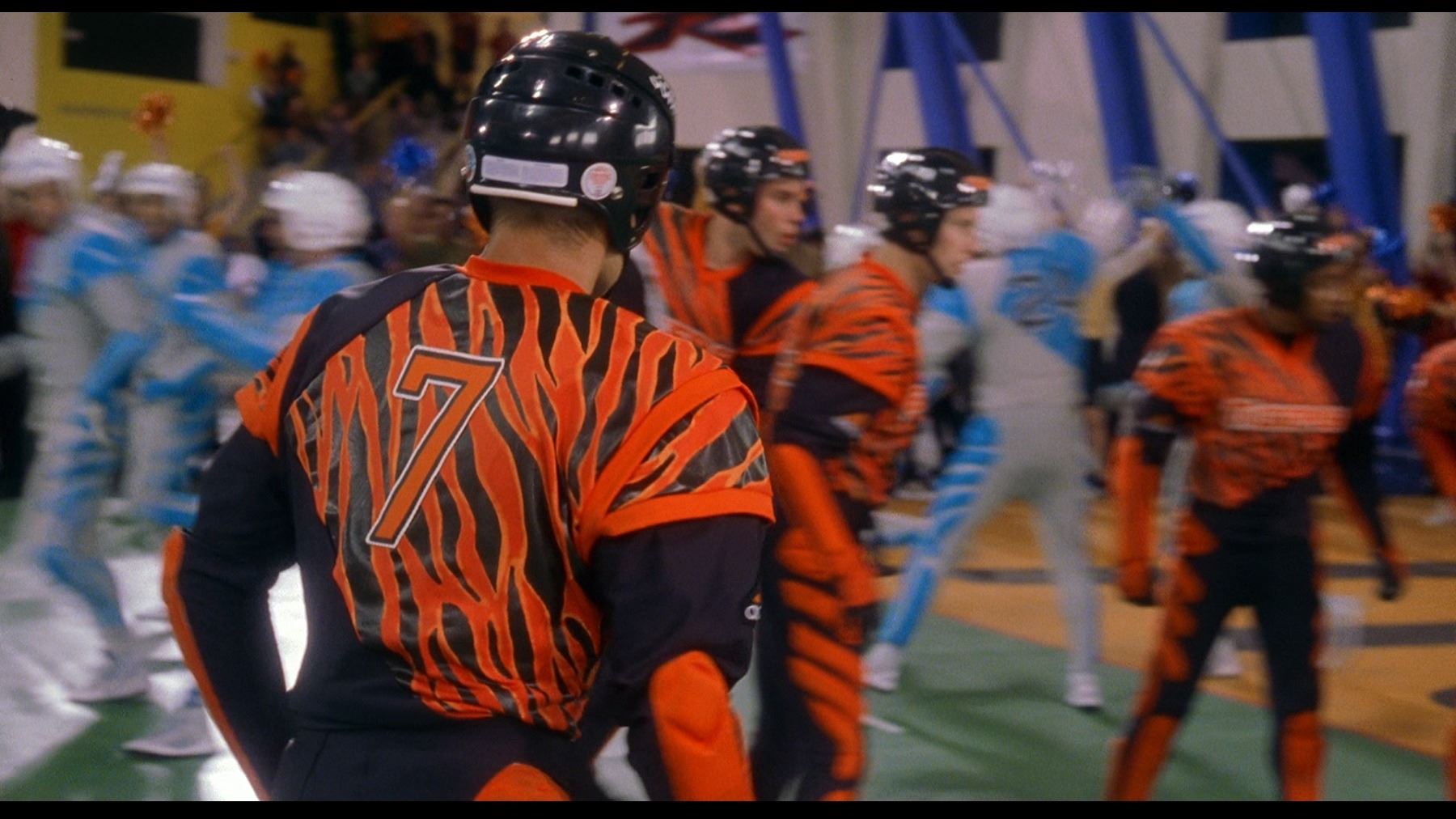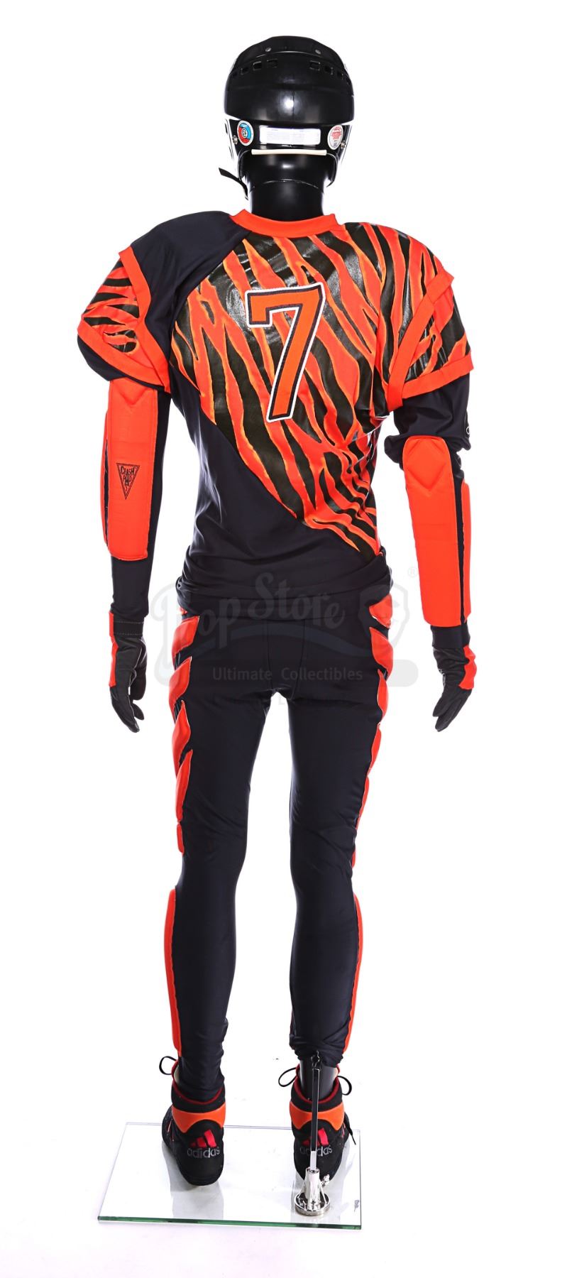 Johnny Rico's (Casper Van Dien) hero Jump Ball costume from Paul Verhoeven's sci-fi action film Starship Troopers. Rico wore his Tigers costume during the Jump Ball game in which he faced off against his rival Zander (Patrick Muldoon).