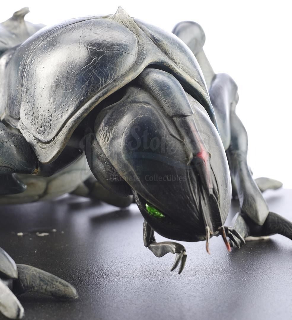 A Tanker Bug maquette from Paul Verhoeven's sci-fi satire Starship Troopers. Mobile Infantryman Johnny Rico (Casper Van Dien) encountered giant Tanker bugs in the war between the humans and the alien Arachnids. This lot comes from the film's creature visual effects supervisor, Phil Tippett, whose Tippett Studio created maquettes of the film's various bugs as three-dimensional tools for shot planning, lighting reference, and other purposes. Tippett was nominated for an Academy Award for his work on the film, including the creation of the Bugs.