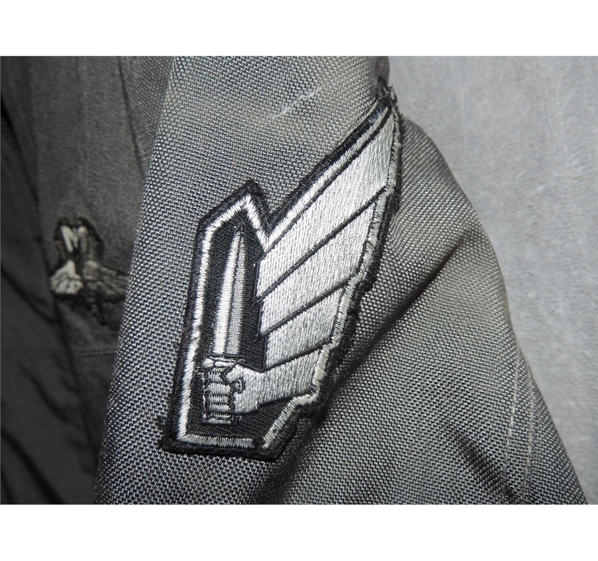 This is a complete Mobile Infantry jacket with all the patches and badges Screen Used in the first STARSHIP TROOPERS film.