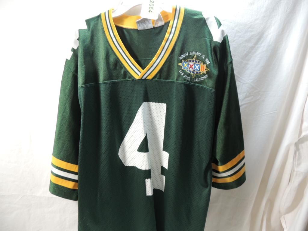 STARTER GREEN BAY PACKERS BRETT FAVRE JERSEY SUNDAY JANUARY 25 1998 SUPERBOWL LOGO. 48/L AS SHOWN. SEE PHOTO FOR MORE DETAILS.