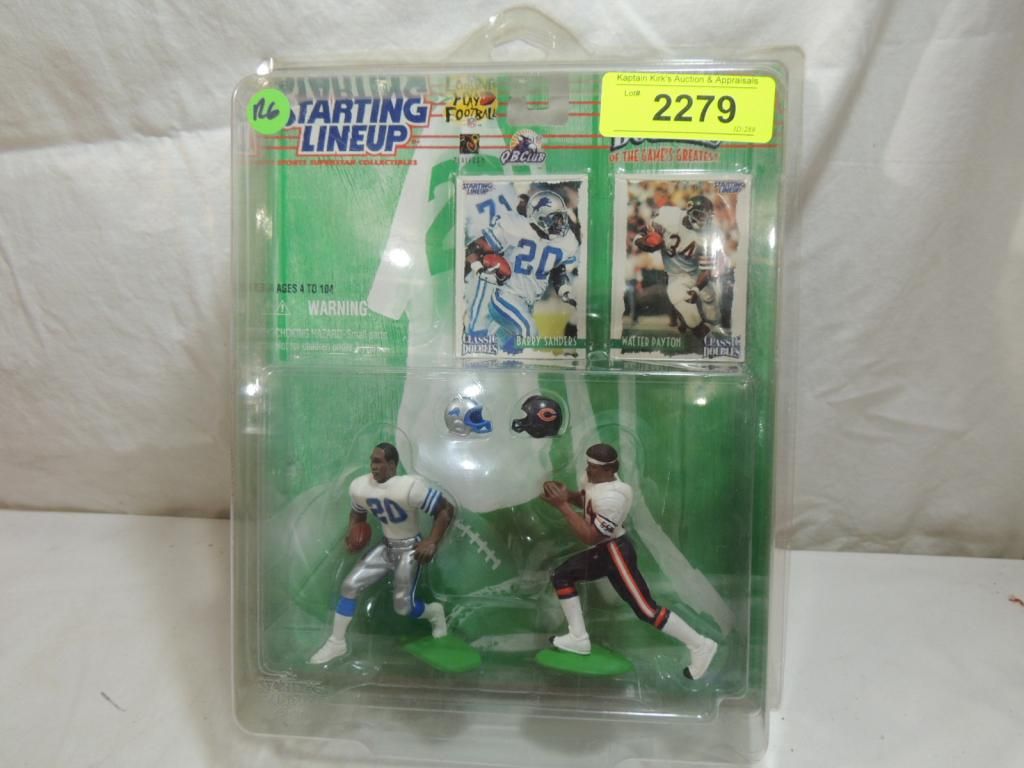RARE STARTING LINEUP WINNING PAIRS CLASSIC DOUBLES BARRY SNADERS AND WALTER PAYTON ACTION FIGURES. NEVER OPENED INCLUDES CARD. 1993 EDITION AS SHOWN SEE PHOTO FOR MORE DETAILS.
