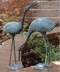 STATELY GARDEN CRANES - SET OF 2 - 24.5"H 36.5"H - BRASS GARDEN SCULPTURES