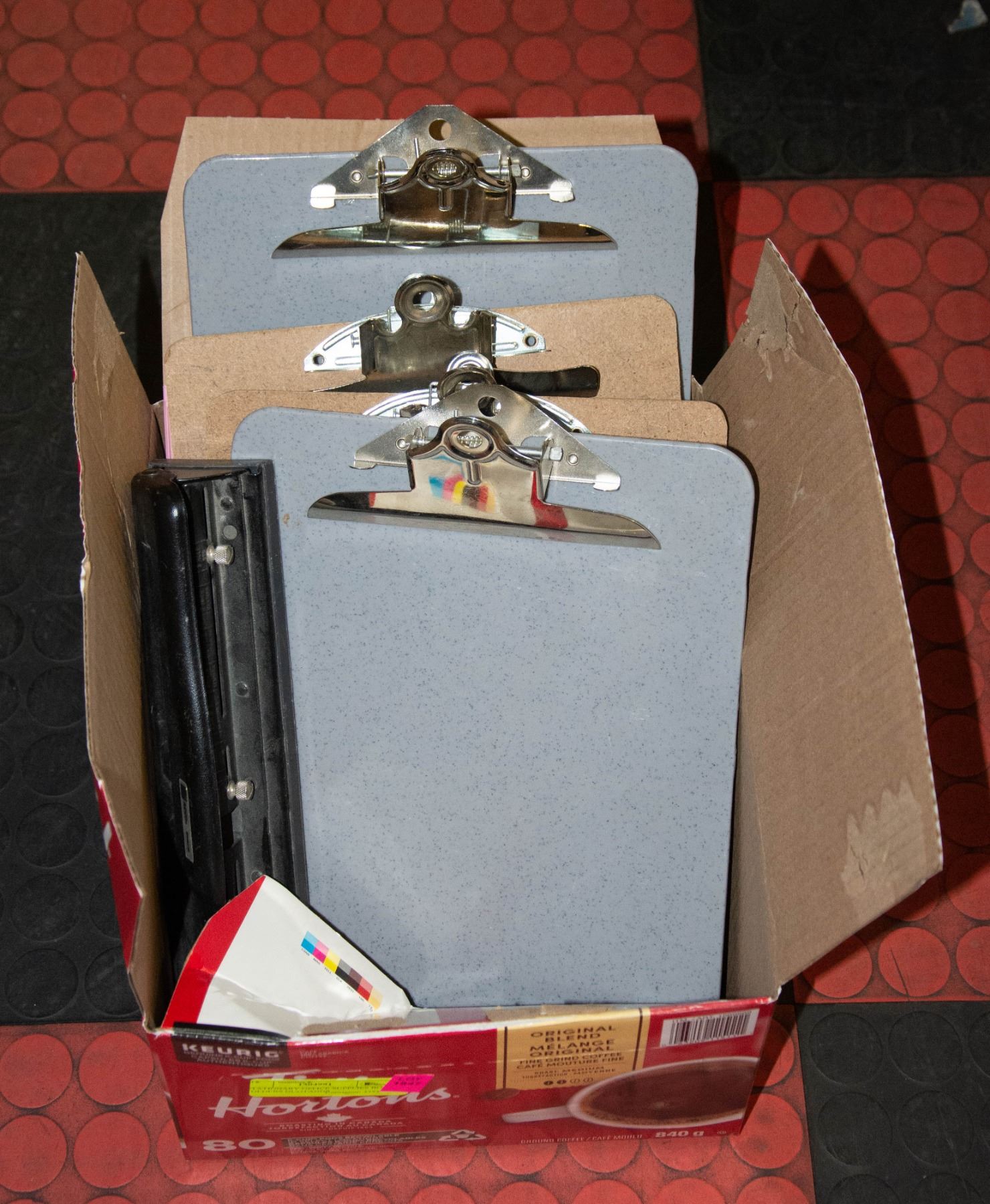 STATIONARY OFFICE SUPPLIES BOX. FOLDERS DUOTANGS