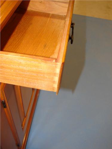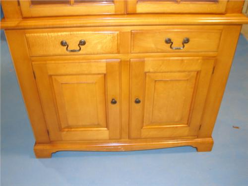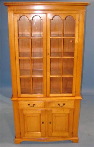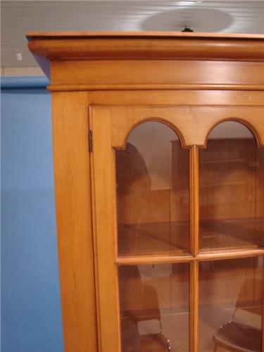 STATTON MAPLE WALL CUPBAORD. Has two 8-pane glass tombstone doors at top over two dovetailed drawers over two raised panel doors. Bracket feet. Top has three shelves. Marked with label on inside of right drawer. 82” H, 40” W, 15” D