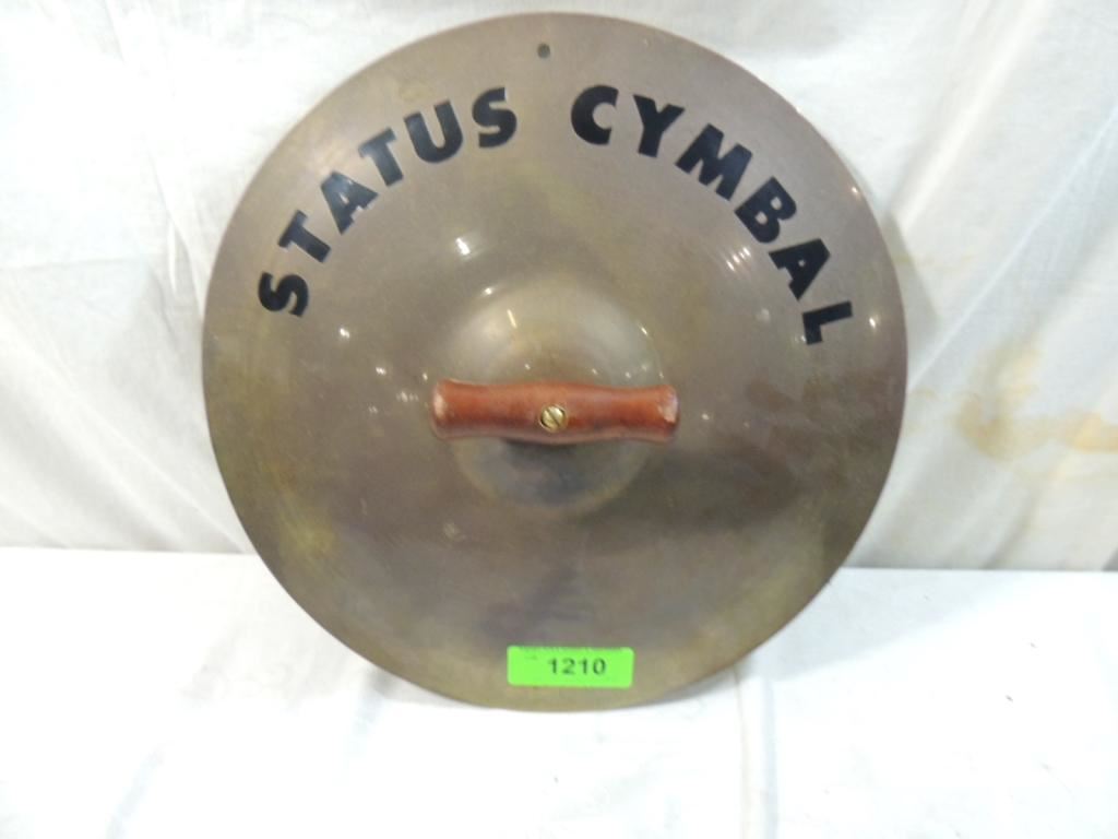 STATUS CYMBAL, PURCUSSION INSTUMENT, HANDLE CYMBAL, VINTAGE MUSICAL INSTRUMENT, CYMBAL, PURCUSSION AS SHOWN SEE PHOTO FOR MORE DETAILS.