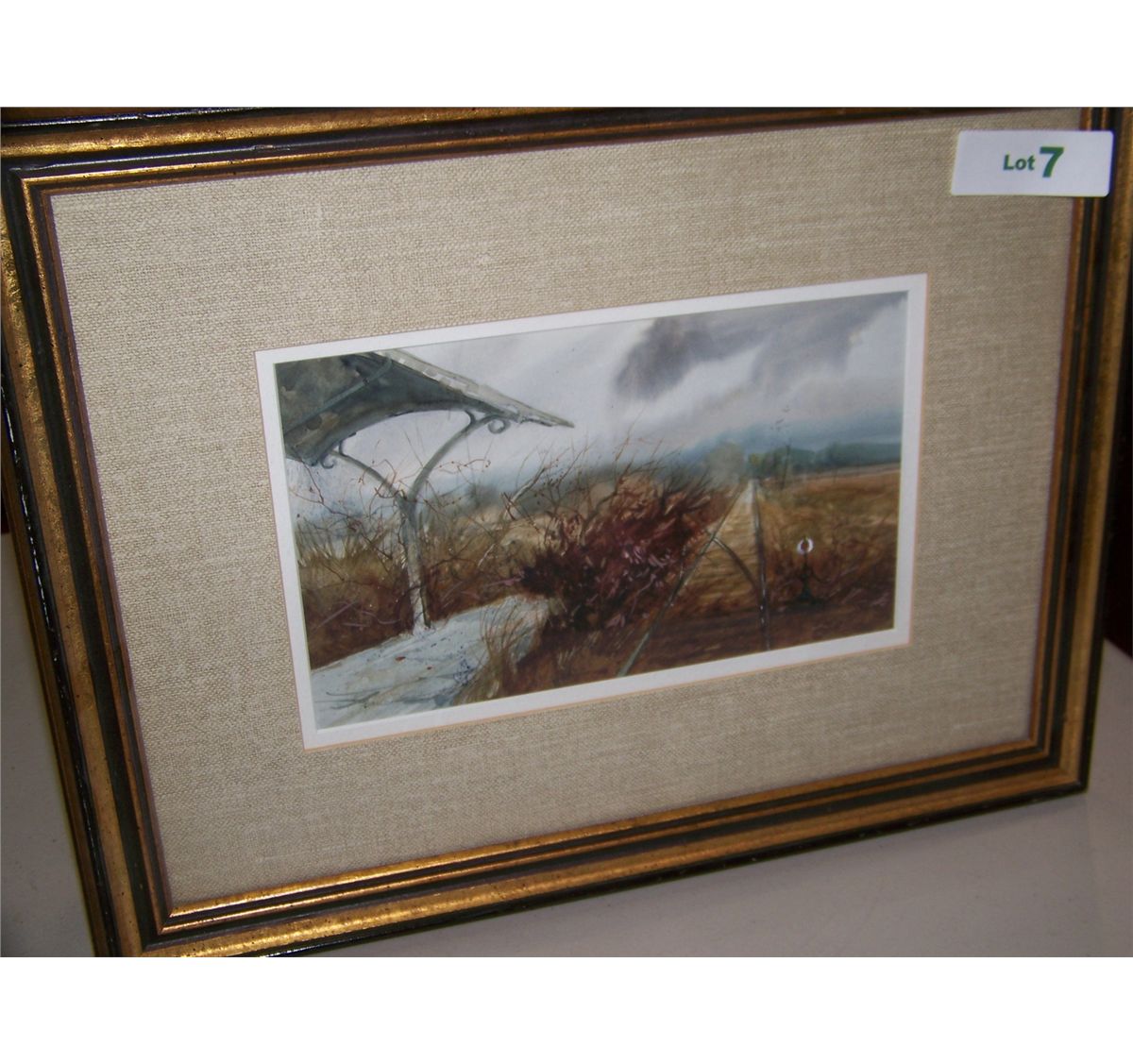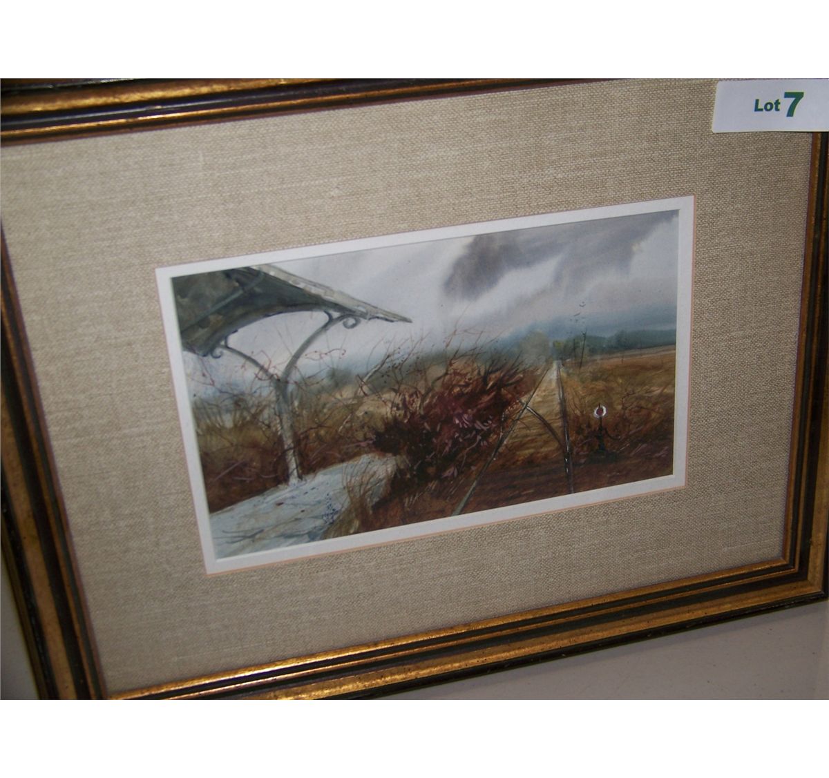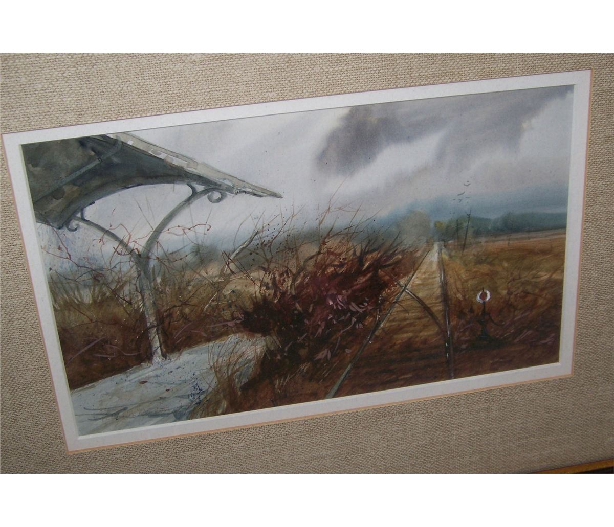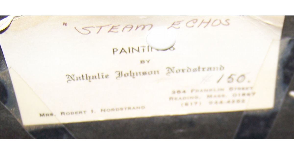"STEAM ECHOS" ORIGINAL WATERCOLOR BY NATHALIE JOHNSON NORDSTRAND . IMAGE 6T X 10W. FRAMED 10 X 14
