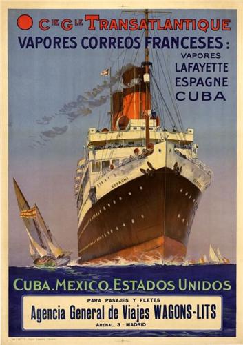 CIE. GLE. TRANSATLANTIQUE VAPOR "ESPAGNE". (1925 CA.). 104x74cm. (41x29,3in.). Litografía. A-. Entelado.