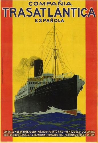 COMPAÑIA TRASATLANTICA ESPAÑOLA LINEAS A NEW YORK-CUBA... (1920 CA.). 100x70cm. (40x27in.). Litografía. B+. Entelado.