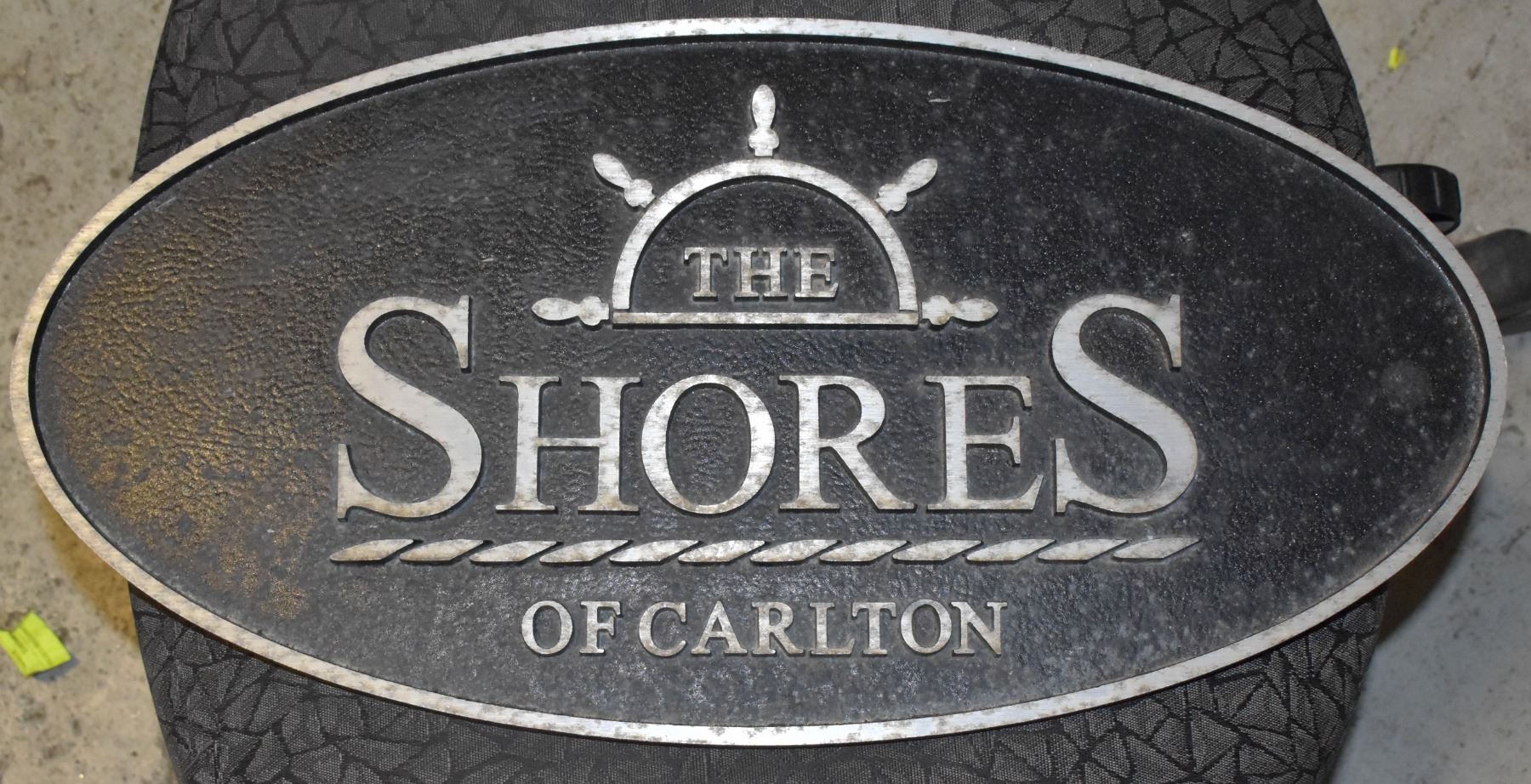 STEEL SHORES OF CARLTON SIGN APPROX 21.75" X 10.2