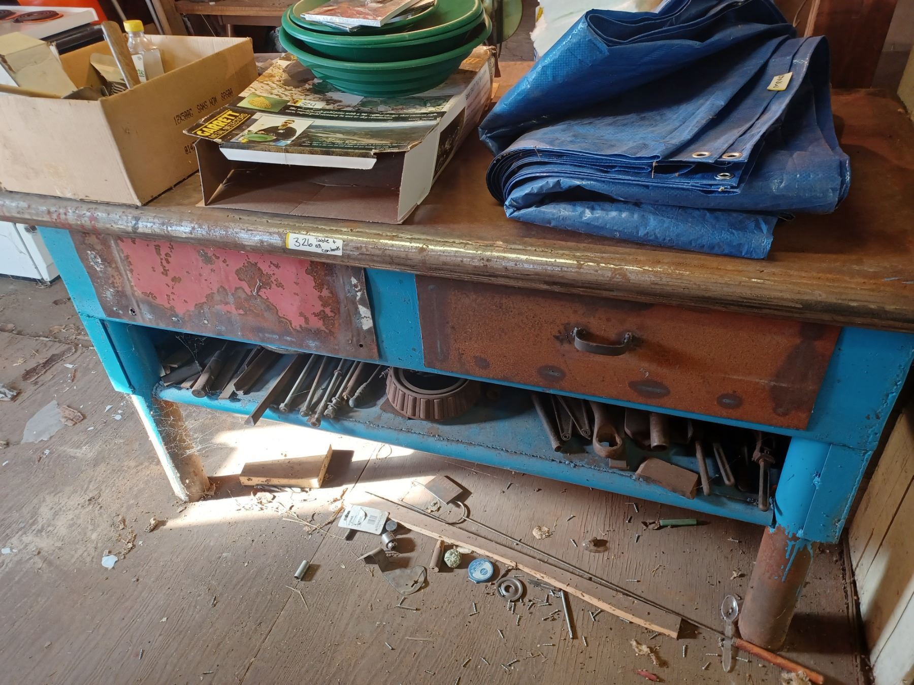 STEEL TABLE AND CONTENTS - PLEASE SEE IMAGES