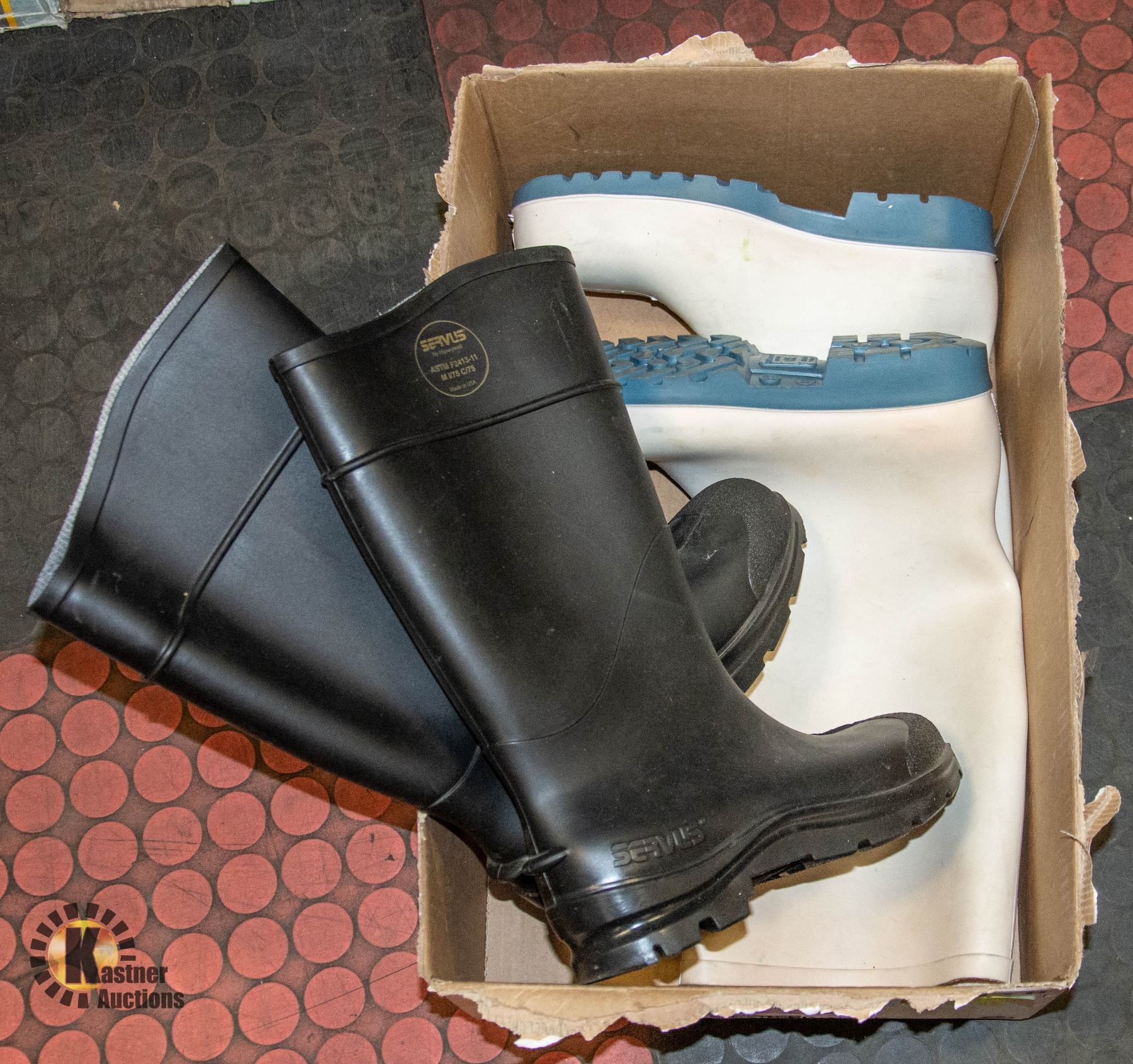 STEEL TOE RUBBER BOOTS BLACK SZ 7 & WHITE SZ 10